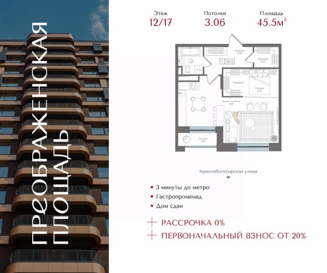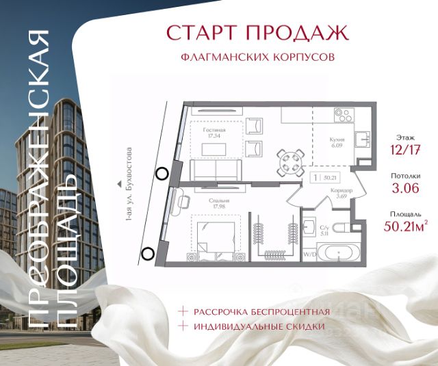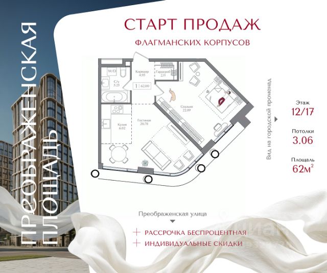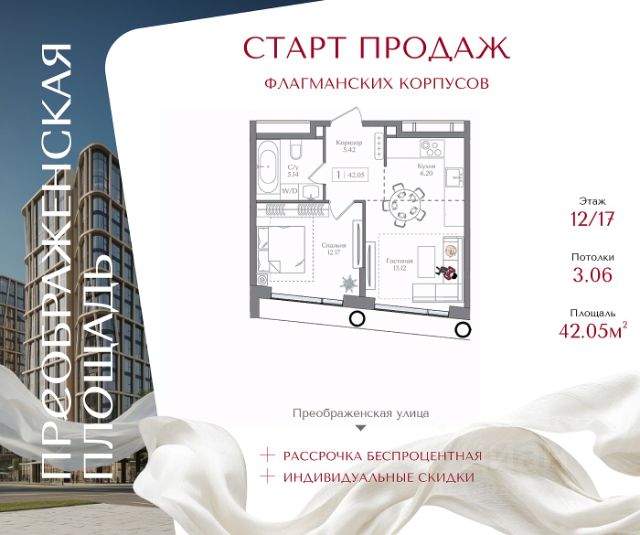 Жилой комплекс "Преображенская площадь" Премиум-класс | старт продаж долгожданных корпусов Открыт старт продаж нового объёма квартир в жилом комплексе "Преображенская площадь". В реализации — долгожданные корпуса проекта, а значит сейчас доступен лучший выбор планировок и наиболее привлекательные условия покупки. Комплекс расположен на первой линии от метро "Преображенская площадь" в историческом районе с развитой инфраструктурой. Удобный выезд позволяет добраться до ТТК всего за 7 минут, до Садового кольца — за 8 минут. Архитектура проекта продумана так, чтобы сохранить ощущение приватности: на каждом этаже расположено всего 35 квартир. Небольшое количество соседей создаёт комфортную, спокойную атмосферу проживания. Входные группы выполнены в формате гранд-лобби с камином, библиотекой и лаунж-зонами. В отделке используются натуральные материалы, формирующие стильное и статусное пространство. Закрытая территория площадью 1,5 га полностью свободна от автомобилей. Пространство двора организовано как ландшафтный парк с прогулочными маршрутами, зонами отдыха и спорта, а также гастропроменадом с кафе и ресторанами. Предусмотрен подземный паркинг с прямым доступом в жилые корпуса. В составе проекта — детский сад и IT-школа 1502 "Энергия", входящая в число лучших школ Москвы и России. Комплекс окружён крупными зелёными зонами: рядом расположены Сокольники, Измайловский и Черкизовский парки, национальный парк "Лосиный остров", ВДНХ и благоустроенная набережная Яузы. Доступна рассрочка 0% при первоначальном взносе от 20%. Старт продаж новых корпусов — возможность приобрести квартиру в премиальном проекте на самых выгодных условиях. Звоните для подробной консультации.