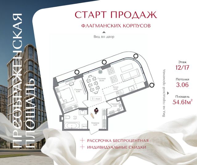 11133 Предлагается к продаже уникальная двухкомнатная квартира с панорамной лоджией в жилом комплексе Бизнес класса - Вдохновение в пешей доступности от двух станций метро: до Бульвара Рокоссовского - 20 минут, до Преображенской площади - 24 минуты.