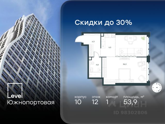 Цена указана с учётом скидки при 100%-й оплате, несубсидированной ипотеке, рассрочке (кроме программы "Рассрочка 0%"). В северной части района Печатники продается 1-комнатная квартира площадью 53.90 кв.м без отделки. Квартира расположена на 12 этаже 68-этажного корпуса 10 в жилом комплексе комфорт-класса Level Южнопортовая (компания Level Group/Левел групп). Отличная транспортная доступность: - 10 мин. пешком до станции метро "Кожуховская"; - 20 мин. пешком до станции МЦК "Дубровка"; - 3 мин. на авто до ТТК; - 13 мин. на авто до Садового кольца; - 15 мин. на авто до Бульварного кольца. Продуманный архитектурный проект: - авторская архитектура от бюро СПИЧ; - уникальные виды на реку, парки и достопримечательности города; - высота потолков в квартирах до 6 м; - окна высотой до 1,87 м с высоким коэффициентом сопротивления теплоотдаче. Расположение: Level Южнопортовая строится в северной части района Печатники - самой приближенной к центру. Здесь будет сформирован новый район "Южный порт", где построят крупный жилой и общественно-деловой центр, аналогичный Москва-Сити. В течение 10-12 лет в этом месте появятся не только жилые дома, но и развитая инфраструктура для жизни и работы. А еще совсем рядом находится набережная Москвы-реки, где планируется построить причалы для речных трамвайчиков и канатную дорогу. Уже сейчас вокруг жилого комплекса работают десятки магазинов и торговых центров, рядом расположено 6 парков, среди которых музей-заповедник "Коломенское". В 10 минутах пешком - 2 муниципальных и 2 частных детских сада, 7 общеобразовательных школ. Внутренняя инфраструктура: Для отдыха жителей в каждом корпусе предусмотрено лобби, оснащенное местами для отдыха, гостевыми санузлами и лапомойками, а в отдельных корпусах - камином. За счёт больших окон и высоких потолков пространства будут наполнены воздухом и светом. На первых этажах жилого комплекса откроются магазины, салоны красоты, фитнес-центр. Для детей строятся собственные детский сад и школа. Благоустройство: Внутренний двор комплекса разработан совместно с бюро GAFA. Основная идея - создать аналог Центрального парка в Нью-Йорке, гармонично сочетая высотные здания и большое изолированное парковое пространство. Вся площадь двора-парка будет огорожена и составит более 2 га, из которых 45% - озеленение. Одним из самых важных ландшафтных элементов здесь станет небольшая речка, наполняющаяся во время дождя. Вокруг неё появится сеть из островов, внутри которых расположатся тематические зоны спорта и отдыха. Технологии и инженерия: - автоматическая передача в управляющую компанию показаний квартирных счётчиков; - телефонная связь, телевидение и интернет на базе оптической мультисервисной сети; - гостевой Wi-Fi в лобби и на территории двора; - единый ключ доступа для входа на территорию комплекса.