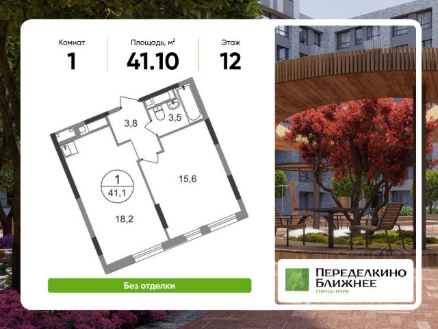 Продается однокомнатная квартира в городе-парке "Переделкино Ближнее". Общая площадь квартиры - 38,3 кв. м, этаж 12 из 17. Срок сдачи - 3 квартал 2028 года. Тип дома - монолитный. Корпус расположен в новой 13 фазе строительства и состоит из 6 секций с переменной этажностью 12-17 этажей. Все секции с отделкой White Box с возможностью повышения за дополнительную плату до дизайнерской отделки: Classic или Smart+ Около 13 фазы запланировано строительство многоуровневого паркинга на 300 м/мест. 13 фаза имеет уникальное расположение и находится непосредственно на берегу Федосьинского пруда, который является сердцем города-парка "Переделкино Ближнее". Город-парк "Переделкино Ближнее" расположен в 8 км от МКАД по Боровскому шоссе. ТРАНСПОРТНАЯ ДОСТУПНОСТЬ: - 15 минут пешком до станции МЦД-4 "Мичуринец" - 25 минут пешком до станции метро "Рассказовка" Солнцевской линии - 30 минут до центра Москвы - 2026 г. - открытие трассы Солнцево-Бутово-Варшавское шоссе РАЗВИТАЯ СОЦИАЛЬНАЯ ИНФРАСТРУКТУРА: - 7 детских садов, 3 школы - банки, продуктовые магазины, аптеки, фитнес центры, салоны красоты и пр БЛАГОУСТРОЙСТВО: - дворы без машин - игровые зоны и развивающие детские площадки - зоны для созерцательного и медитативного отдыха - зоны для занятий спортом ОСОБЕННОСТИ АРХИТЕКТУРЫ: - высокие потолки от 3,03 м - безбарьерные входные группы - колясочные в каждой входной группе - кладовые помещения расположены на -1 этаже каждой секции - в каждой секции 2 лифта: 1 пассажирский, 1 грузовой - на фасаде предусмотрены корзины для установки кондиционеров АВТОРСКИЙ ДИЗАЙН: Входные группы выполнены по авторскому дизайну, благодаря панорамному остеклению наполнены естественным светом. В каждой входной группе будет располагаться комфортабельная зона ожидания с возможностью зарядить электронные устройства, почтовые ящики, колясочная, акцентные пуфы и столик.