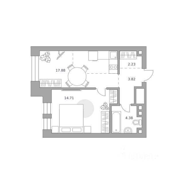 Продается просторная квартира площадью 56.40 м2 в жилом комплексе ТАТАРСКАЯ, 35. Квартира находится в 1 секции корпуса 2. Этаж 12-й из 19. Квартира без чистовой отделки, с просторной кухней 26.60 м2. Жилая площадь 16.00 м2. Высота потолка от 3.50. ТАТАРСКАЯ, 35 - новая архитектурная доминанта Замоскворечья, достопримечательность на фотопанорамах исторического центра Москвы. Элитный дом, созданный для тех, кто умеет смотреть далеко вперед, мыслить масштабно и воплощать собственный сценарий жизни. Вдохновляющие прогулки по променаду набережной, в уютных переулках, в парке "Зарядье", в Михайловском саду и Репинском сквере. Наслаждение высоким искусством в Третьяковской галерее, Доме Музыки, театральном музее им. А.А. Бахрушина, театре на Малой Ордынке. За окнами - Кремль, высотка на Котельнической, панорамы Замоскворечья и острова Балчуг, огни Садового кольца. Собственные спорт-румы, детская, репетиторская, бьюти-пространства, деловое пространство с коворкингом, переговорной и сигарной. Собственный трехуровневый фитнесс-центр с бассейном, тренажерным залом, сауной, хаммамом, массажным кабинетом. Площадь двора - 1,8 га, половина территории покрыта деревьями, кустарниками и лужайками. Дом расположен внутри Садового кольца - отсюда в считанные минуты можно добраться до важнейших мест столицы: достопримечательностей и парков, театров и ресторанов, деловых и административных центров. 7 минут до Кремля на автомобиле, 15 минут до Третьяковской галереи и 8 минут до Садового кольца пешком. Планировочные решения и визуализации предварительны, возможны изменения.