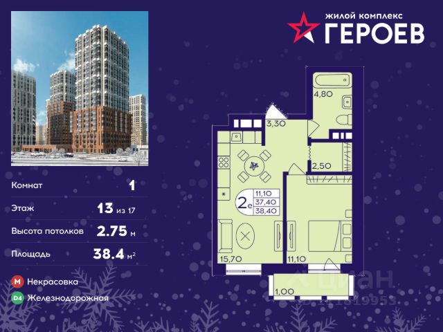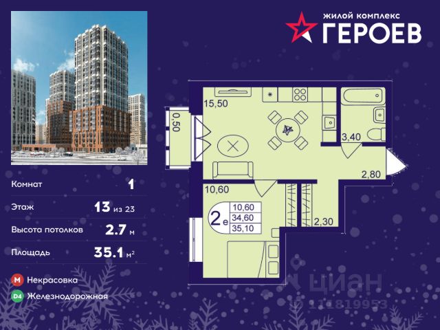 Продаётся 1-комнатная квартира 37.10 кв. м. в жилом комплексе "Героев" в Балашихе, Железнодорожный. Квартира расположена на 13 этаже 610 корпуса. В наличии квартиры с отделкой. Всего 40 минут до центра Москвы. При покупке квартиры в сданном доме ключи выдаются сразу! Жилой квартал "Героев" - это уютный проект для семей с детьми. В квартале созданы все условия для досуга всех возрастов: игровые и спортивные площадки, места для отдыха и прогулочные зоны. За 15 минут можно дойти от дома до Ольгинского лесопарка, популярного места для отдыха на свежем воздухе. На территории жилого комплекса уже открыт детский сад на 250 мест и началось строительство еще одного - для 220 малышей, а также школы для 1320 учеников. Рядом работают магазины, кафе, супермаркеты, пункты выдачи. Преимущества: • В уютных светлых квартирах с просторными кухнями-гостиными удобно встречать гостей и проводить время наедине друг с другом. • Благодаря увеличенному остеклению в комнатах много света. • Квартиры продаются с отделкой, можно заселяться сразу после получения ключей.