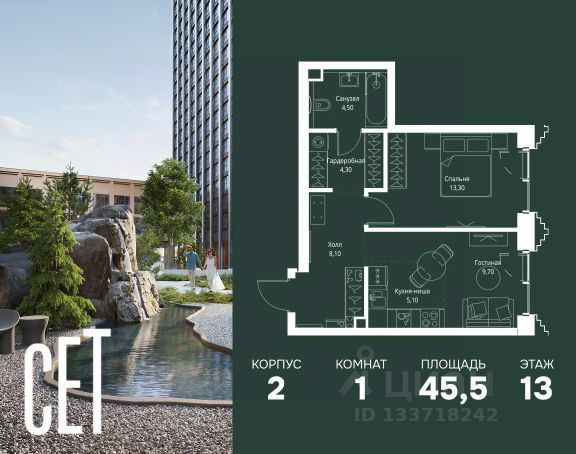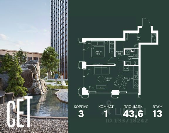 В продаже 1-к квартира от застройщика. Общая площадь 45.70, жилая 16.60, кухня 18.2. Квартира расположена на 13 этаже жилого квартала "Событие-6", корпус 1, Секция 1. Квартира без отделки. Срок сдачи: 4 кв. 2029 года. СОБЫТИЕ.6 — финальный дом парк-квартала СОБЫТИЕ на Мосфильмовской. Переезжайте в уже сформированный квартал с готовой инфраструктурой и парком! Премиальный жилой комплекс в престижном районе Москвы предлагает стильную архитектуру, продуманное благоустройство и великолепно разнообразие общественных пространств. Свой парк прямо возле дома! Архитектура Архитектура СОБЫТИЯ.6 выполнена в ультрасовременном стиле московским бюро Atrium на основе дизайн-кода британских архитекторов LDA Design и UHA London. Дом отличает оригинальная геометрия фасадов, большое остекление и высокие лобби (до 6,2 м) с авторской мебелью и светильниками. Расположение Мосфильмовская улица (Раменки) — один из престижных районов Москвы. Близость к историческому и деловому центру, природным зонам Запада столицы. Транспортная доступность: • 10 мин до Москва-Сити и ТТК; • 15 мин до Садового кольца; • 25 мин до аэропорта Внуково; • 7-10 мин до станций метро "Аминьевская" и "Мичуринский проспект". Инфраструктура: • парк "Событие" (12 га, финалист конкурса Правительства Москвы) с беговыми (1,5 км) и велодорожками (2,7 км), экотропой (1,6 км), площадками, лекторием; • школа, детский сад, магазины, салоны красоты, рестораны (к моменту заселения); • мультидвор с игровыми и спортивными площадками, мини-бульваром; • общественная терраса на 10-м этаже (коворкинг, лаунж); • Закрытые общественные пространства: детская комната, спортивный зал, коворкинг, лаунж-зоны. Паркинг 256 мест для жителей (48 — для электромобилей), 24 гостевых (5 — для электромобилей), мойки колес, кладовые, зоны для велосипедов. Окружение Парки и заповедники (Воробьёвы горы, Матвеевский лес и др.), МГУ, театр им. Н. И. Сац, стадион "Лужники". Безопасность Видеонаблюдение, контроль доступа, видеодомофоны, консьерж-сервис 24/7, системы пожарной безопасности и мультисервисная оптическая сеть.