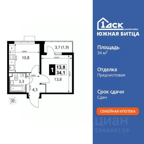 Прямая продажа от застройщика! Семейный жилой район класса Комфорт Плюс Продаётся 1-к квартира номер 46 общей площадью 38.1 кв.м. на 13-м этаже 21 этажного здания. Чистовая отделка. Цена с учётом скидки. Особенности квартиры: - Линейная планировка - максимальная функциональность и удобство. - Просторная кухня - место для семейных ужинов и кулинарных экспериментов. - Гардеробная - удобство для хранения и организации вещей. - Лоджия - уютное место для отдыха и тишины. - Панорамное остекление лоджии - открывает вид на окружающий мир. Информация о комплексе: Сочетание свободного перемещения по внутреннней территории без машин и ощущения абсолютной безопасности благодаря надежным ограждениям - вот что отличает ЖК Южная Битца. На территории комплекса созданы все условия как для активного образа жизни, так и для спокойного времяпрепровождения. Свободно перемещайтесь по внутренней территории в безбарьерной среде! Продуманное зонирование во дворах позволяет отделить тихие зоны для родителей со спящими младенцами и тех, кто хочет почитать на свежем воздухе, от шумных игровых зон. Игровые зоны учитывают возраст детей. Площадки для детей старшего возраста вынесены за пределы дворов. Ощущение уютного дома должно начинаться с подъезда. Мы постарались предусмотреть все нюансы, чтобы наши лифты отвечали самым строгим современным требованиям. А наличие кладовых позволит вам поддерживать идеальный порядок и уют в вашей квартире! Транспортная доступность: В 3 км от МКАД в нескольких минутах езды до трех станций метро: Аннино, Бульвар Дмитрия Донского, улица Старокочаловская и станции МЦД2 - жд Бутово. Внутренняя инфраструктура: Для жителей жилого района "Южная Битца" доступна развитая инфраструктура близлежащих московских районов Чертаново, Южное, Бирюлёво Западное, Северное Бутово и Южное Бутово. Множество образовательных учреждений, объекты здравоохранения, торговые и развлекательные центры, кинотеатры, кафе, рестораны, парки.