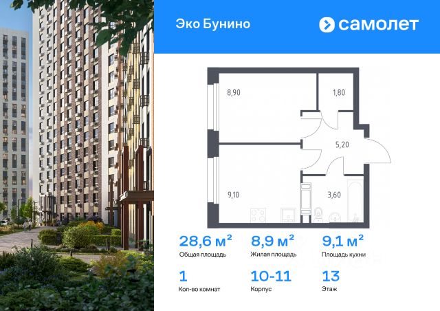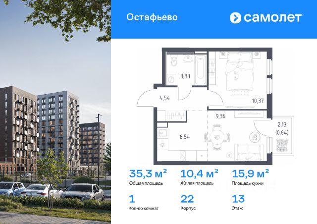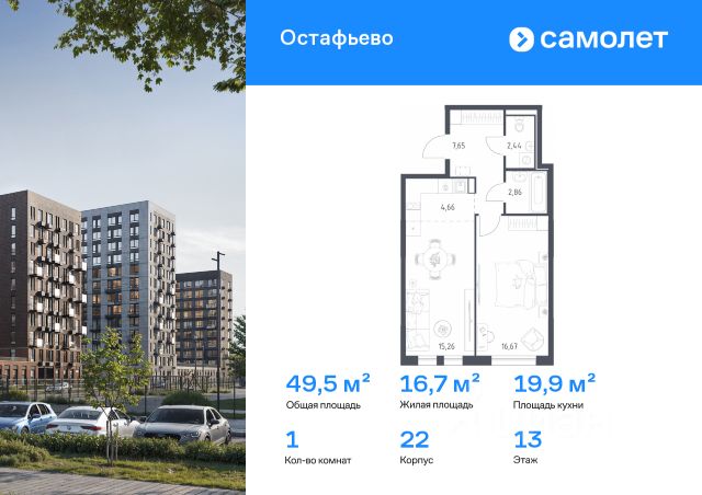 В жилом комплексе, расположенном по соседству с ландшафтным парком "Южное Бутово", продается 1-комнатная квартира площадью 49.60 кв. м. без отделки. Квартира расположена на 13 этаже 1 корпуса в жилом квартале комфорт-класса "Новые Смыслы" (ГК Unikey/Юникей). Доступная и удобная локация: - 10 минут ходьбы до станции метро "Потапово". - 25 минут ходьбы до станции метро "Бунинская аллея". - 15 минут на авто до Калужского шоссе. - 20 минут на авто до МКАД. - 30 минут на машине до аэропортов "Внуково" и "Остафьево". Продуманный архитектурный проект: - Разноуровневые секции с эстетичные башнями и контрастными цветовыми сочетаниями, напоминающими башни в Сити. - Сказочные виды из окон на современный район столицы. - Авторские планировки с потолками в 3 метра, просторными кухнями-гостиными и мастер-спальнями. - Комфортные бесплатные общественные пространства. - Подземный паркинг с прямым доступом на лифте. - Настоящий лес с живописными пейзажами и прудом прямо во дворе. Расположение Комплекс "Новые Смыслы" расположится в благоприятном районе Новой Москвы - Коммунарка. Зеленое окружение, богатая инфраструктура развивающегося района - все это сформирует особое пространство для комфортной жизни, наполненной смыслом. 10 минут на велосипеде - и вы в ландшафтном парке "Южное Бутово" или сквере у Потаповских прудов. Чуть дальше расположен Бутовский лесопарк. В окружении "Новых Смыслов" вы найдете все необходимые социальные объекты. В двух шагах от дома находится 5 школ, более десятка детских садов, секции для занятий малышей и подростков, частные клиники, супермаркеты, рестораны, студии красоты и фитнес-центры. За 12 минут на авто вы доберетесь до ледовой арены, комплекса "Спорт Станция" и спа-центра "Termoland". Внутренняя инфраструктура Для жителей "Новых Смыслов" будут созданы бесплатные общественные пространства: - Деловая гостиная с эстетичным коворкингом и переговорными. - Гостиная для души и тела, включающая фитнес-зону с тренажерами и пространства для стретчинга, йоги и медитаций. - Гостиная детства, где дети будут играть и развиваться под присмотром тьютора. - Кино-гостиная - кинотеатр на крыше одного из домов, предлагающий разнообразную программу. - Прачечная, работающая только для жильцов. Вместе с корпусами комплекса на территории запланировано строительство детского сада. На первых этажах корпусов откроются кофейни, пекарни, сервисы быта и пункты доставки. Благоустройство Чтобы отдохнуть от суеты города, достаточно выйти во двор: здесь раскинулся настоящий лес с живописными пейзажами. В тени деревьев жителей ждут пруд с мостиком и беседкой на берегу, тихие прогулочные аллеи, спортивная площадка и зоны для занятий йогой и бадминтоном на свежем воздухе. Юных жителей порадуют современные детские площадки, жукарий и специальное пространство для подвижных игр. Безопасность на территории гарантирована: двор огорожен от машин и оснащен камерами видеонаблюдения.
