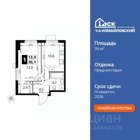 Просторная 1-комнатная квартира для молодой семьи. Общая площадь - 47.4м2, удобная планировка, кухня-гостиная 22.8м2. Панорамные виды из окон на две стороны - на национальный парк "Лосиный остров" и благоустроенный внутренний двор. Условия покупки: - Скидка при полной оплате - 10% - Ипотека от 3,5% на весь срок или 0,11% на первый год - Рассрочка без процентов - Trade-in с проживанием на время строительства дома НАЗАРЕ - шесть домов бизнес-класса высотой 24-43 этажа. Проект расположен рядом с национальным парком "Лосиный остров" и парком "Сокольники". В продаже квартиры с мастер-спальнями, кухнями-гостиными, открытыми террасами, просторными кладовыми и ванными с окном. Форматы - от светлых студий 21,6 м2 до семейных 4-комнатных 125,5 м2. Часть лотов - с предчистовой отделкой White Box. Транспортная доступность: - Метро "Бульвар Рокоссовского" и МЦК - 2 мин. пешком - Северо-Восточная хорда - 3 мин. на автомобиле - Третье транспортное кольцо - 15 мин. на автомобиле - Садовое кольцо - 18 мин. на автомобиле Инфраструктура: В составе проекта появится собственный детский сад и торгово-развлекательный центр с акцентом на шопинг и досуг. На первых этажах домов откроются кафе, пекарни, магазины и службы сервиса. В районе Богородское находятся престижные школы, медцентры, магазины и спортивные клубы.
