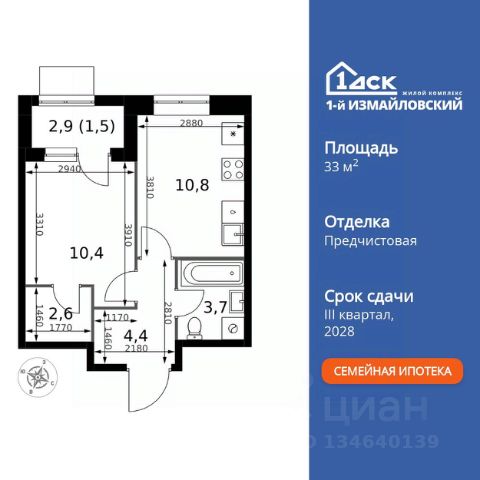 Просторная 1-комнатная квартира для молодой семьи. Общая площадь - 44м2, удобная планировка, кухня-гостиная 18.1м2. Панорамные виды из окон на две стороны - на национальный парк "Лосиный остров" и благоустроенный внутренний двор. Условия покупки: - Скидка при полной оплате - 10% - Ипотека от 3,5% на весь срок или 0,11% на первый год - Рассрочка без процентов - Trade-in с проживанием на время строительства дома НАЗАРЕ - шесть домов бизнес-класса высотой 24-43 этажа. Проект расположен рядом с национальным парком "Лосиный остров" и парком "Сокольники". В продаже квартиры с мастер-спальнями, кухнями-гостиными, открытыми террасами, просторными кладовыми и ванными с окном. Форматы - от светлых студий 21,6 м2 до семейных 4-комнатных 125,5 м2. Часть лотов - с предчистовой отделкой White Box. Транспортная доступность: - Метро "Бульвар Рокоссовского" и МЦК - 2 мин. пешком - Северо-Восточная хорда - 3 мин. на автомобиле - Третье транспортное кольцо - 15 мин. на автомобиле - Садовое кольцо - 18 мин. на автомобиле Инфраструктура: В составе проекта появится собственный детский сад и торгово-развлекательный центр с акцентом на шопинг и досуг. На первых этажах домов откроются кафе, пекарни, магазины и службы сервиса. В районе Богородское находятся престижные школы, медцентры, магазины и спортивные клубы.