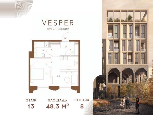 Продаётся 1-комнатная квартира общей площадью 55.10 м² на 13 этаже Жилого Комплекса Бадаевский. О нем говорили. Его ждали. Жилой комплекс "Бадаевский" на Кутузовском проспекте — это место для жизни, которое займет место в истории. Комплекс стал первым в истории московским проектом, победившим в категории Residential на World Architecture Festival. Девелопер Capital Group. В "Бадаевском" исторические здания завода и футуристические "парящие" дома создают единый комплекс, который станет новой достопримечательностью и символом Москвы. Панорамное остекление, террасы и веранды дарят неординарные и захватывающие виды. Благодаря расположению домов и панорамному остеклению, жилые пространства в "Бадаевском" будут наполнены светом. А виды из окон домов-"лент" на Москву-реку, пивоваренный завод, небоскребы "Москва-Сити" и Белый дом дополнены принципиально новым ощущением высоты. На территории Бадаевского завода появится масштабный ландшафтный парк с концепцией "русский лес". Впервые в истории района Дорогомилово у жителей появится прямая связь набережной Тараса Шевченко с Кутузовским проспектом. Близость Москвы-реки добавляет к преимуществам "Бадаевского" природную энергетику и приятные прогулки на свежем воздухе. Подземная парковка позволит сделать территорию завода полностью пешеходной, а сам комплекс представит новый подход к организации открытого и уединенного пространства в центре Москвы. Расположение в начале Кутузовского проспекта делает проект не только престижным, но и удобным: до Третьего транспортного и Садового кольца можно доехать за 5 минут, а Кремль и основные исторические достопримечательности расположены в 15 минутах на автомобиле. Напротив "Бадаевского" находится офисный кластер "Москва-Сити". Для жителей комплекс будет создано не только новое масштабное благоустройство, но и вся необходимая инфраструктура. В исторических корпусах появятся магазины, бутики, кафе и рестораны, коворкинг и крафтовая пивоварня, а в зданиях элеваторов — русская баня. Кроме того, запланирован фермерский рынок и досуговый кластер с музыкальной студией, центром детского творчества и фитнес-центром с бассейном.