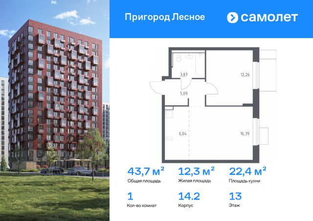 Этаж 12. Просторная квартира 42,23 м2. Особенность квартиры: выход окон на Запад, панорамные виды из окна, прихожая 4 м2, комната 20 м2, кухня 10 м2, ванная комната 3,75 лоджия 3,17 м2.