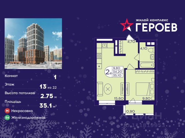 Продаётся 1-комнатная квартира 37.90 кв. м. в жилом комплексе "Героев" в Балашихе, Железнодорожный. Квартира расположена на 13 этаже 410 корпуса. В наличии квартиры с отделкой. Всего 40 минут до центра Москвы. При покупке квартиры в сданном доме ключи выдаются сразу! Жилой квартал "Героев" - это уютный проект для семей с детьми. В квартале созданы все условия для досуга всех возрастов: игровые и спортивные площадки, места для отдыха и прогулочные зоны. За 15 минут можно дойти от дома до Ольгинского лесопарка, популярного места для отдыха на свежем воздухе. На территории жилого комплекса уже открыт детский сад на 250 мест и началось строительство еще одного - для 220 малышей, а также школы для 1320 учеников. Рядом работают магазины, кафе, супермаркеты, пункты выдачи. Преимущества: • В уютных светлых квартирах с просторными кухнями-гостиными удобно встречать гостей и проводить время наедине друг с другом. • Благодаря увеличенному остеклению в комнатах много света. • Квартиры продаются с отделкой, можно заселяться сразу после получения ключей.