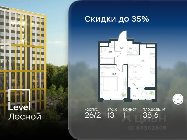Цена указана с учётом скидки при 100%-й оплате, несубсидированной ипотеке, рассрочке (кроме программы "Рассрочка 0%"). В районе, утопающем в густой зелени лесов, многочисленных парков и скверов, продаётся 1-комнатная квартира площадью 43.00 кв.м без отделки. Квартира расположена на 13 этаже в жилом комплексе комфорт-класса Level Лесной (компания Level Group/Левел групп). Отличная транспортная доступность: - 25 мин. пешком до станции метро "Пятницкое шоссе"; - 28 мин. на автобусе до станции метро и МЦД-2 "Волоколамская"; - 11 мин. на авто до МКАД; - 25 мин. на авто до ТТК. Продуманный архитектурный проект: - Концепция проекта Level Лесной от бюро СПИЧ; - Высотность комплекса до 15 этажей с уникальными видами на лесные массивы и город; - Высота потолков до 3 м; - Современные окна высотой до 1,6 м, в части квартир предусмотрены окна в пол. Высота подоконников 0,6 м; Расположение: Level Лесной строится в зелёной зоне ближайшего Подмосковья, г.о. Красногорск в посёлке Отрадное. Шаговая и автомобильная доступность до метро и больших транспортных артерий города. За 25 минут вы дойдёте до станции метро "Пятницкое шоссе", а за 20 минут на машине сможете доехать до станции метро "Тушинская". Район окружен роскошной зеленью лесов и парковых зон, занимающих территорию свыше 1 000 гектаров. Помимо благоприятной экологии, здесь множество возможностей для активного отдыха и поддержания физической формы. Облагороженная территории с полностью развитой инфраструктурой. На территории проекта находится детский сад и школа "Светлые Горы", которая входит в список лучших частных школ от Forbes Education (по данным на 2023г.). Кроме того, в пешей доступности расположено ещё 8 детских садов, а также запланировано открытие современной муниципальной школы. В непосредственной близости находятся сетевые супермаркеты и локальные магазины, аптеки, клиники, почта, библиотека, салоны красоты, рестораны, спортивные и творческие секции, развивающие детские центры. В 12 минутах пешком расположен торговый парк "Отрада" с продуктовым и строительным гипермаркетами, магазинами, кинотеатром и развлечениями для детей. Внутренняя инфраструктура: Мы знаем, как важно, чтобы магазины и сервисы были всегда рядом. В сданных корпусах Level Лесной уже расположена полностью готовая развитая инфраструктура. На первых этажах корпуса 27 предусмотрено ещё 14 коммерческих помещений. Благоустройство: Продуманное пространство и аура приватного европейского городка рождают чувство лёгкости и расслабления у каждого, кто попадает на территорию проекта. Концепцию общественных площадок разработали в партнёрстве два архитектурных бюро: Highlight Architecture и SCAPE. В безопасных дворах без машин каждый обязательно найдёт себе место для вдохновения, отдыха и спорта.