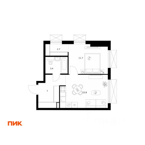 Продаётся 1-комнатная квартира 103, площадью 37,54 м², на 13 этаже в ЖК "Пехра" корпус 8. Стоимость — от 6941254 руб. Квартира без отделки, планировка односторонняя, окна во двор.