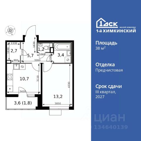 Прямая продажа от застройщика! Жилой Комплекс класса Комфорт. Продаётся 1-к квартира номер 560 общей площадью 38.7 кв.м. на 13-м этаже 13 этажного здания. Отделка Whitebox. Цена с учётом скидки. Особенности квартиры: - Линейная планировка - максимальная функциональность и удобство. - Раздельный санузел - больше удобства для всех членов семьи. - Увеличенная высота потолков - ощущение простора и легкости. - Гардеробная - удобство для хранения и организации вещей. - Лоджия - уютное место для отдыха и тишины. Квартира с предчистовой отделкой (White box). Вам не придется заниматься черновыми и трудоёмкими работы, а чистовую отделку и дизайн - сделайте на свой вкус. Информация о комплексе: Квартал класса комфорт плюс, где современное городское пространство граничит с удивительной природой вокруг. 1-й Химкинский расположен на территории в 102 га и органично вписан в природное окружение Химкинского леса и канала им. Москвы. В проекте предусмотрена богатая коммерческая инфраструктура с собственным торговым центром, общеобразовательные учреждения и социальные объекты. Изюминкой жилого комплекса будут спортивно-оздоровительный комплекс с термами и SPA и семейный парк развлечений. Транспортная доступность: ЖК "1-й Химкинский" дает возможность выбрать любой способ передвижения как до города, так и до самых разных объектов, которые могут представлять интерес для его жителей. Не важно, какой способ передвижения вы предпочитаете, успевать всегда и везде можно вне зависимости от выбора транспорта. - 8 мин. пешком (800 м) до остановки "Золотая Арка" -10 мин пешком (1 км) до остановки "Поворот на Ивакино" Внутренняя инфраструктура: - Безопасность: закрытые дворы без машин, безбарьерная среда и сквозные подъезды, камеры на детских площадках с возможностью трансляции на смартфоне - Идеальный отдых в кругу семьи: семейный парк развлечений на территории, торговый центр (2-х этажный) общей площадью более 8 тыс. кв. м с фудкортом - Образование: 3 детских сада и современная муниципальная школа на 2450 мест - Спортивная среда: закольцованный веломаршрут с навигацией, спортивный комплекс с термами, закрытый тренажерный зал и зоны ворк-аута - Социальные объекты: поликлиника со станцией скорой помощи, пожарное депо - Подземный паркинг и кладовые помещения на -1 этаже, станция техобслуживания и автомойка на территории