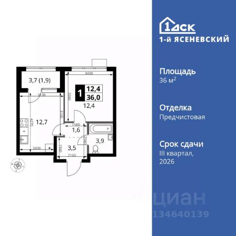 Прямая продажа от застройщика! Жилой Комплекс класса Комфорт Плюс. Продаётся 1-к квартира номер 244 общей площадью 36 кв.м. на 13-м этаже 16 этажного здания. Отделка Whitebox. Особенности квартиры: - Квартиры рядом с метро - м. Корниловская 9 мин пешком - 63 га лесопарка за окнами - Школа c it-кластером и бассейном. 2 детских сада - Линейная планировка - максимальная функциональность и удобство. - Можно оборудовать рабочее место - комфорт для работы и учёбы. - Ниша под шкаф - компактное и удобное место для вещей. - Лоджия - уютное место для отдыха и тишины. Квартира с предчистовой отделкой (White box). Вам не придется заниматься черновыми и трудоёмкими работы, а чистовую отделку и дизайн - сделайте на свой вкус. Информация о комплексе: В жилом комплексе комфорт-плюс класса "1-го Ясеневского" доступны преимущества двух стилей жизни. Ведь в пешей доступности метро, школа с 25-метровым бассейном и IT-кластером и при этом целых 63 га благоустроенного Троицкого лесопарка под окнами, где так приятно дышать свежим воздухом и слушать пение птиц. Собственная закрытая территория "1-го Ясеневского" представляет собой уютный оазис. Здесь и зеленый освещенный бульвар для прогулок, система велодорожек, маленькая городская площадь, кафе, пекарни и кофе поинты. А еще дворы без машин и многоэтажная парковка. Изюминка территории - фруктовые деревья во дворах и городские сады. "1-й Ясеневский" - всего в 1 км от МКАД, на территории новой Москвы. Жилой комплекс, где есть все необходимое для современного человека. Транспортная доступность: До метро "Корниловская" - 12 минут пешком До метро "Тютчевская" - 25 минут пешком До метро "Теплый стан" - 10 минут на транспорте До метро "Ольховая" - 30 минут на общественном транспорте Личный автотранспорт: Выезд на Калужское шоссе - 500 м МКАД - 1 км Внутренняя инфраструктура: ЖК "1-й Ясеневский" можно назвать идеальным местом для жизни семьи с детьми. Здесь буквально за домом находится Троицкий лесопарк - излюбленное место прогулок молодых родителей. А во внутренних дворах под детские площадки выделены специальные зоны. Они оборудованы всем, что нужно для счастливого детства: современными и максимально безопасными качелями, песочницами и лазалками. Оборудование и игровые сценарии на детских площадках спроектированы вместе с командой детских психологов для правильного развития ребенка и для повышения их интереса. Также рядом с домом два детских садика, один из которых уже построен и школа на 1100 мест. Школу по праву можно назвать образцовым учебным заведением. В ней закладываются основы успешного будущего. Здесь есть класс робототехники, IT-кластер, 25-метровый бассейн и прекрасно оборудованные спортзалы.