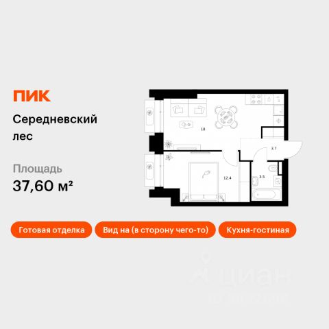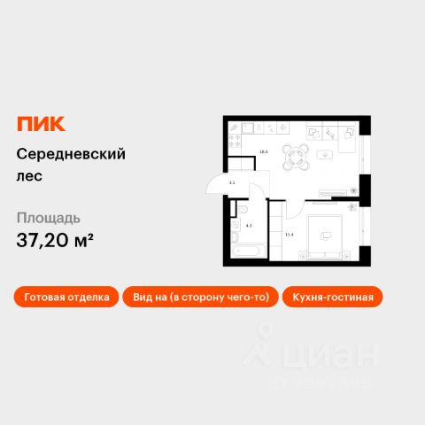 Продаётся 1-комн. квартира площадью 37,6 кв.м на 13 этаже 16 этажного дома (Корпус 2.1.6, Секция 6) проекта ПИК Середневский лес. Светлый просторный подъезд на уровне земли, функциональная планировка, большие окна, c отделкой. В 10 минутах на автомобиле находится станция метро "Внуково", а в 15 минутах — станции "Филатов Луг" и "Саларьево". От них до центра Москвы всего 3540 минут. На рейсовом автобусе от жилого квартала до метро "Филатов Луг" — 20 минут. На территории "Середневского леса" появилось общественное пространство с игровыми площадками, местами для отдыха, пешеходными маршрутами и велопарковкой — для прогулок, отдыха и встреч жителей квартала. Также внутри жилого квартала уже открыта школа на 1100 мест и детский сад для 325 малышей. В дальнейшем откроется ещё один сад для 340 детей. Артикул 1038688 (Застройщик ООО "Специализированный застройщик Середнево")