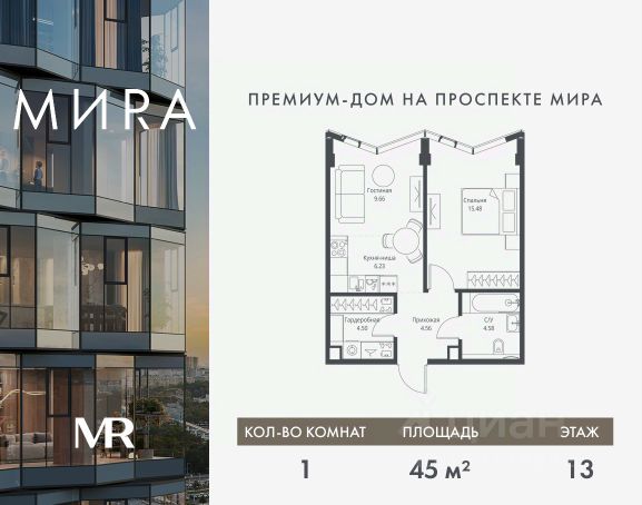 Прямая продажа от застройщика. Продаётся 1-комнатная квартира общей площадью 37.72 м² без отделки в доме премиум-класса МИRА на 13-м этаже 17 этажного дома. Квартира расположена в корпусе 1. Дом премиум-класса МИRA это: • Спокойный район с богатой историей и сложившейся инфраструктурой • Авторская архитектура на стыке классики и современности • Вход в парк прямо из жилого комплекса • Панорамные виды на Яузу, парки, ВДНХ и скульптуру "Рабочий и колхозница" • Удобные сервисы и безопасность для каждого резидента Расположение: Жилой квартал расположен в Алексеевском районе на северо-востоке Москвы, на второй линии домов, таким образом вы сможете дистанцироваться от шума и суеты проспекта Мира, но при этом будете жить недалеко от этой важной городской магистрали. Прямо у дома: • Парк Акведук • Река Яуза • Памятник "Рабочий и колхозница" Пешком: • 16 мин м. ВДНХ На автомобиле: • 12 мин ТТК • 15 мин Садовое кольцо • 12 мин Национальный парк "Лосиный остров" Благоустройство: Концепция благоустройства от бюро "ДРУЖБА" разработана в стиле "Лесная тропа". В уютном дворе расположились словно затерянные в лесу, площадки для отдыха. Они разделяются островками с травами, кустарниками, крупными камнями и деревьями, между которыми проходят узкие песчаные тропинки с деликатной подсветкой по вечерам. Центральной точкой притяжения для жителей станет главная площадь с фонтаном, которая открывается сразу из двух входных групп. Внутренний двор МИRA: • Детская площадка с зонами для игр малышей до трех лет и детей более старшего возраста • Спортивная площадка с профессиональным оборудованием для тренировок • Декоративные перголы • Воздушный арт-объект с подсветкой, похожий на облако • Чайный домик, где в отдельном отапливаемом павильоне можно в любое время года попить кофе с соседями или устроить камерное семейное чаепитие • Зоны для работы и отдыха с гамаком под навесом, скамейками и креслами Инфраструктура и окружение: В Алексеевском районе есть огромные благоустроенные парки, магазины, гимназии с высоким рейтингом и филиалы ВУЗов, частные и государственные детские сады, модные кофейни и фитнес-центры. В квартале МИRА предусмотрены: • 2 ресторана с видом на парк Акведук • 3 кафе • фитнес-студия • подземный паркинг на 330 машино-мест Компания MR предлагает своим клиентам специальные условия приобретения квартир в рамках программ ипотечного кредитования от банков-партнеров.