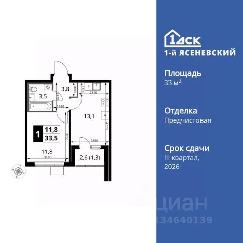 Прямая продажа от застройщика! Жилой Комплекс класса Комфорт Плюс. Продаётся 1-к квартира номер 272 общей площадью 33.5 кв.м. на 13-м этаже 18 этажного здания. Отделка Whitebox. Особенности квартиры: - Квартиры рядом с метро - м. Корниловская 9 мин пешком - 63 га лесопарка за окнами - Школа c it-кластером и бассейном. 2 детских сада - Линейная планировка - максимальная функциональность и удобство. - Просторная кухня - место для семейных ужинов и кулинарных экспериментов. - Ниша под шкаф - компактное и удобное место для вещей. - Лоджия - уютное место для отдыха и тишины. Квартира с предчистовой отделкой (White box). Вам не придется заниматься черновыми и трудоёмкими работы, а чистовую отделку и дизайн - сделайте на свой вкус. Информация о комплексе: В жилом комплексе комфорт-плюс класса "1-го Ясеневского" доступны преимущества двух стилей жизни. Ведь в пешей доступности метро, школа с 25-метровым бассейном и IT-кластером и при этом целых 63 га благоустроенного Троицкого лесопарка под окнами, где так приятно дышать свежим воздухом и слушать пение птиц. Собственная закрытая территория "1-го Ясеневского" представляет собой уютный оазис. Здесь и зеленый освещенный бульвар для прогулок, система велодорожек, маленькая городская площадь, кафе, пекарни и кофе поинты. А еще дворы без машин и многоэтажная парковка. Изюминка территории - фруктовые деревья во дворах и городские сады. "1-й Ясеневский" - всего в 1 км от МКАД, на территории новой Москвы. Жилой комплекс, где есть все необходимое для современного человека. Транспортная доступность: До метро "Корниловская" - 12 минут пешком До метро "Тютчевская" - 25 минут пешком До метро "Теплый стан" - 10 минут на транспорте До метро "Ольховая" - 30 минут на общественном транспорте Личный автотранспорт: Выезд на Калужское шоссе - 500 м МКАД - 1 км Внутренняя инфраструктура: ЖК "1-й Ясеневский" можно назвать идеальным местом для жизни семьи с детьми. Здесь буквально за домом находится Троицкий лесопарк - излюбленное место прогулок молодых родителей. А во внутренних дворах под детские площадки выделены специальные зоны. Они оборудованы всем, что нужно для счастливого детства: современными и максимально безопасными качелями, песочницами и лазалками. Оборудование и игровые сценарии на детских площадках спроектированы вместе с командой детских психологов для правильного развития ребенка и для повышения их интереса. Также рядом с домом два детских садика, один из которых уже построен и школа на 1100 мест. Школу по праву можно назвать образцовым учебным заведением. В ней закладываются основы успешного будущего. Здесь есть класс робототехники, IT-кластер, 25-метровый бассейн и прекрасно оборудованные спортзалы.
