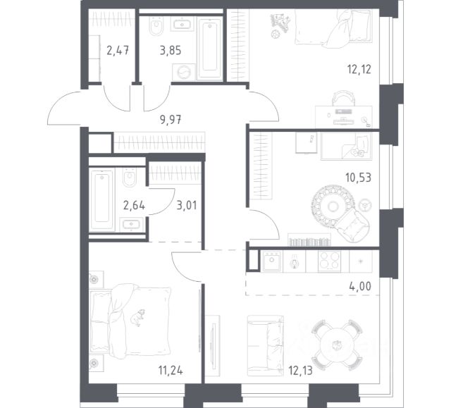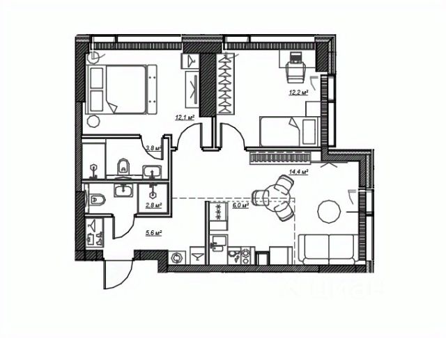 Предлагается 2к-квартира общей площадью 53.7 кв.м в ЖК SET.