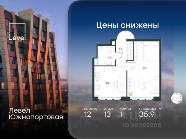 Предложение месяца от застройщика: - Скидка до 10% на ограниченный пул квартир - Рассрочка 0% на 1 год - Семейная ипотека без удорожания, ставка 4% - Ипотека для всех на весь срок, ставка 11,89% Продаётся 1-комнатная квартира от застройщика ГК "КОРТРОС" в жилом комплексе бизнес-класса УЛЬТИМА Сити. Квартира расположена на 13 этаже 45 этажного корпуса 1. Общая площадь 56,68 м². Без отделки. УЛЬТИМА Сити — жилой комплекс бизнес-класса в перспективном районе на юго-востоке Москвы. На его территории появятся 9 башен на 756 этажей, двухуровневый подземный паркинг, собственная инфраструктура, включая детский сад и школу. Всего девелопер благоустроит территорию в 2,6 га. Ближайшая станция метро — "Южный порт". Она откроется в 2028 году и будет находиться в 2-х минутах ходьбы. А прямо напротив расположится остановка водного автобуса-электрохода "Синичка". Дорога от квартала будет удобна и для автомобилистов: - до Кремля — 12 км - до МКАД — 12 км - до выезда на ТТК — 3 км - до Садового кольца — 8 км В двух корпусах первой очереди УЛЬТИМА Сити этажностью 45 и 52 реализуется 1 079 квартир с продуманными, рациональными планировочными решениями. В ассортиментной линейке представлены однокомнатные квартиры от 28,2 до 61 кв. м, двухкомнатные лоты от 44,3 до 95,4 кв. м, квартиры с тремя (71 — 115,57 кв. м) и четырьмя спальнями (106,6 — 114,97 кв. м). В экспозиции также есть квартиры с террасами, лоджиями, тремя и четырьмя санузлами, а также с функциональными нишами-кладовыми на кухнях. Запроектированы и эксклюзивные двухуровневые резиденции со вторым светом, в том числе с видом на Москву-реку, площадью от 77,7 до 141,9 кв. м. В рамках проекта запланировано строительство 9 корпусов, школы на 500 учащихся и детского сада на 225 мест. Еще будет создана продуманная инфраструктура для жителей: детские и спортивные площадки, амфитеатр для мероприятий, беседки и теплицы для садоводства, коворкинг, детский клуб и ресторан с открытой террасой. Доступ в жилой комплекс осуществляется по биометрическому контролю. Вокруг квартала будет приватная территория с видеонаблюдением и консьерж-сервисом 24/7. Лобби корпусов будут иметь двойные выходы: на улицу и во внутренний закрытый двор.