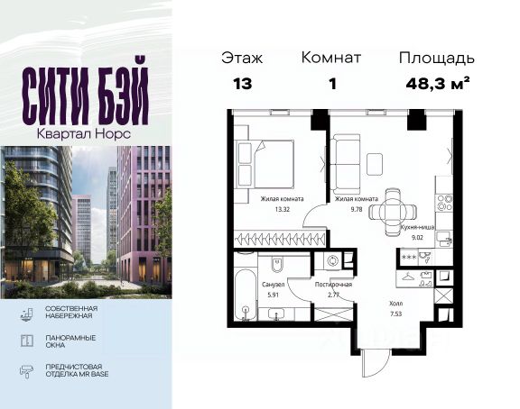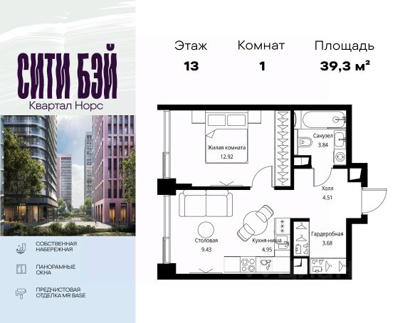 Продаётся 1-комнатная квартира 40 м². В жилом районе Алиа на 13-м этаже 30-этажного дома. Жилой район Алиа — это дома бизнес-класса у слияния Москвы-реки и Сходни. Алиа находится в Покровском-Стрешневе, экологически чистом районе на престижном северо-западе столицы. Район возводится на бывшей территории Тушинского аэрополя, где никогда не было промышленного производства. Алиа — это район разностороннего развития, спроектированный по принципу WORK.LIVE.PLAY.LEARN. Это "15-минутный город", где вся необходимая для комфортной жизни инфраструктура — на расстоянии приятной прогулки. У района удобное расположение: отсюда меньше 10 минут пешком до станций метро "Спартак" и "Тушинская" и всего полчаса на автомобиле до центра города или аэропорта Шереметьево. Архитектурную концепцию Алиа разработало бюро SOM (Skidmore, Owings & Merrill), авторы знаменитой "Бурдж-Халифа". В Алиа больше 140 планировочных решений, среди которых — редкие для Москвы форматы: квартиры с окном в ванной, пентхаус, сити-юниты и таунхаусы. Почти половина территории района отдана под благоустройство. В Алиа три парка: Линейный парк с кафе и магазинами, Центральный парк с амфитеатром, сухим фонтаном и большим плейхабом для детей всех возрастов и Прибрежный парк на собственной набережной, одной из самых длинных в Москве. В каждом урбан-блоке — закрытый внутренний двор с гипоаллергенными растениями и детской площадкой. В лобби каждого жилого корпуса в Алиа оборудована зона ожидания, колясочная, гостевой санузел и лапомойка для домашних животных. За стойкой ресепшена резидентов и их гостей встречает консьерж. Центральное лобби урбан-блока — это стильное общественное пространство с коворкингом, лаундж-зоной и кофе-пойнтом. Это "вторая гостиная" жителей урбан-блока и одно из мест, где формируется комьюнити Алиа. Два ключевых объекта инфраструктуры в Алиа — это спорткомплекс "Чкалов Арена", где представлены 25 видов спорта, и самый большой в стране бизнес-парк класса A, благодаря которому району обеспечено быстрое развитие.