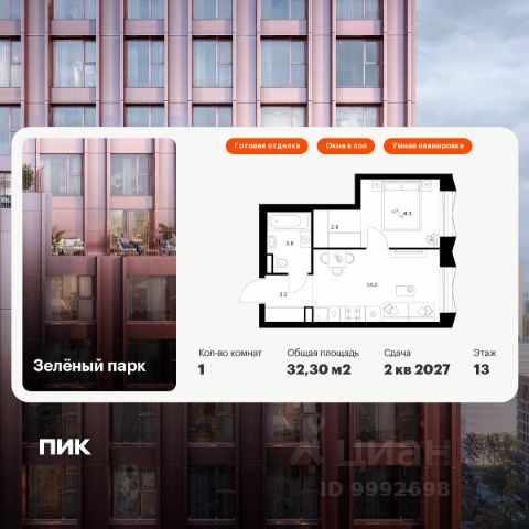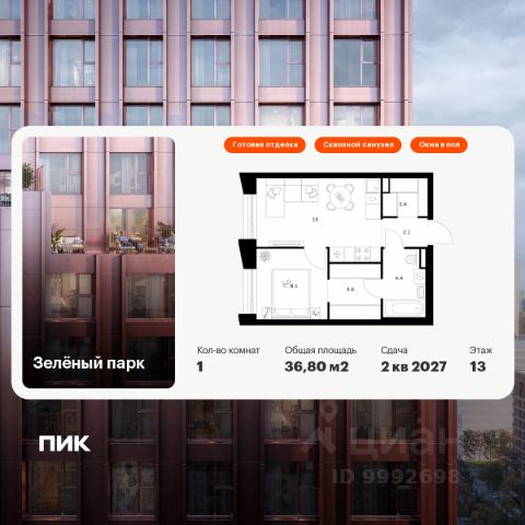 Продаётся 1-комн. квартира площадью 36,8 кв.м на 13 этаже 28 этажного дома (Корпус 6.6, Секция 5) проекта ПИК Зелёный парк. Светлый просторный подъезд на уровне земли, функциональная планировка, большие окна, c отделкой. Большой квартал с оригинальной архитектурой в обжитом районе Зеленограда. От него до станции МЦД-3 "Зеленоград-Крюково" — 20 минут пешком, до Кутузовского шоссе можно доехать на машине за 3 минуты, а до Пятницкого шоссе — за 5 минут. Характер "Зелёного парка" отражён в архитектуре. Квартал состоит из уютных разноэтажных блоков с оригинальными акцентами. Цветовая палитра проекта спокойная и сдержанная: оттенки белого и коричневого сочетаются с пастельным розовым и мятным. В проекте запланированы также два детских сада, две школы и паркинг. На первых этажах откроются магазины, кафе и другие сервисы — чтобы купить кофе и свежий хлеб к завтраку, можно будет просто спуститься на лифте. В уютных дворах-парках появятся места для отдыха, детские площадки, кофейни и зоны отдыха. Рядом — Зеленоградский лес, Парк Победы и Михайловский пруд, где можно гулять и заниматься спортом. У жителей "Зелёного парка" будет возможность получить московскую прописку. Для любителей спорта в 10 минутах пешком от квартала — велодром с BMX-трассой, физкультурно-оздоровительный комплекс Горизонт, а также лыжероллерная трасса длиной около 3 км. Артикул 970910 (Застройщик АО "СПЕЦИАЛИЗИРОВАННЫЙ ЗАСТРОЙЩИК "ЗЕЛЕНОГРАДСКИЙ") Купить 1-комнатную квартиру на 13 этаже в Зеленограде.