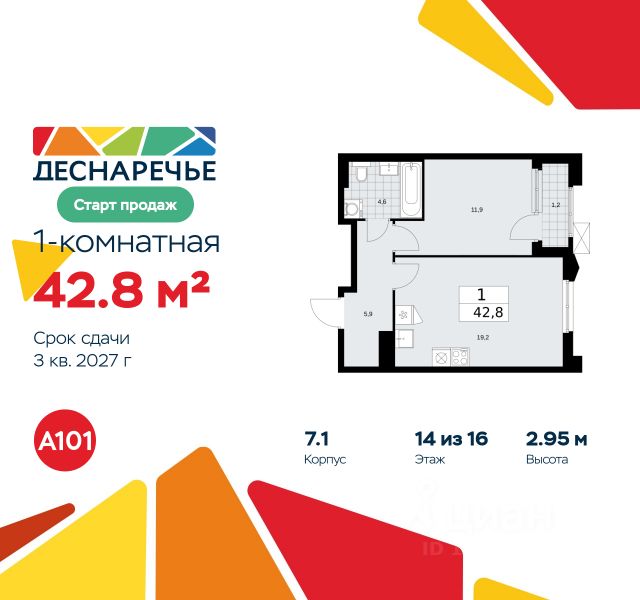 Продается 1-комн. квартира, без отделки в ЖК "Новые Ватутинки. Квартал у реки". Общая площадь: 40.1 кв.м., жилая: 15.9 кв.м., площадь кухни: 10.6 кв.м. Этаж: 14. Район расположен всего в 14 километрах от МКАД по Калужскому шоссе, в центральной части Новой Москвы. Добраться сюда можно на автобусах и маршрутках от станций метро "Ольховая", "Теплый Стан" и "Бульвар Адмирала Ушакова". Время в пути от "Теплого Стана" и "Ольховой" занимает в среднем до 20 минут, даже в часы пик. В 2025 году рядом начнется строительство новой станции метро "Десна" (Троицкая линия), которая будет находиться в пешей доступности. Благодаря удачному расположению и развитой инфраструктуре Новые Ватутинки становятся одним из культурных и образовательных центров Новой Москвы. Строительство нового микрорайона началось с трех жилых корпусов, оснащенных подземными паркингами, индивидуальными кладовыми и коммерческими помещениями на первых этажах. Заречный имеет два удобных выезда на Калужское шоссе, что обеспечивает свободный проезд без заторов. В будущем жители также смогут пользоваться станцией метро "Десна", выбрав общественный транспорт. В районе предусмотрено строительство двух образовательных комплексов с детскими садами и школами, поликлиники и торгового центра Сквозь весь микрорайон — от будущей станции метро до набережной и парка "Андерсен" — протянется пешеходный бульвар длиной 1,5 км с уютными скверами, мини-площадями и садами. Архитектурная концепция предусматривает постепенное снижение этажности ближе к бульвару, создавая приятную для жизни и прогулок городскую среду. Принцип "город в гармонии с природой" реализован через дворы без машин и безбарьерное пространство на всей территории. Внутренние дворы будут предназначены для тихого отдыха и детских игр, а активные зоны разместятся на крупных плейхабах и в общественных пространствах. "Андерсен" станет центром активного досуга: здесь запланированы вело- и пешеходные маршруты, спортивные площадки, зоны для индивидуальных тренировок на свежем воздухе, а также места для рыбалки, сапбординга и тюбинга. Квартирный фонд отличается разнообразием планировок и продуманной эргономикой: просторные квартиры, большие лоджии, по две ванные комнаты. Свободные планировки позволят легко зонировать пространство под личные нужды — создать уютную спальню, рабочее место или гостиную. В цокольном этаже предусмотрены кладовые для хранения сезонных и крупных вещей, а также подземный паркинг с индивидуальными и семейными машино-местами. Спуститься к автомобилю можно прямо из квартиры — на лифте. Проект включает систему видеодомофонии: жители смогут получать уведомления о визитах гостей в режиме онлайн, открывать входную дверь удалённо, сохранять снимки с панели вызова, а также при желании — подключить наблюдение за камерами в лифтах через мобильное приложение. Выдача ключей в 2027г.