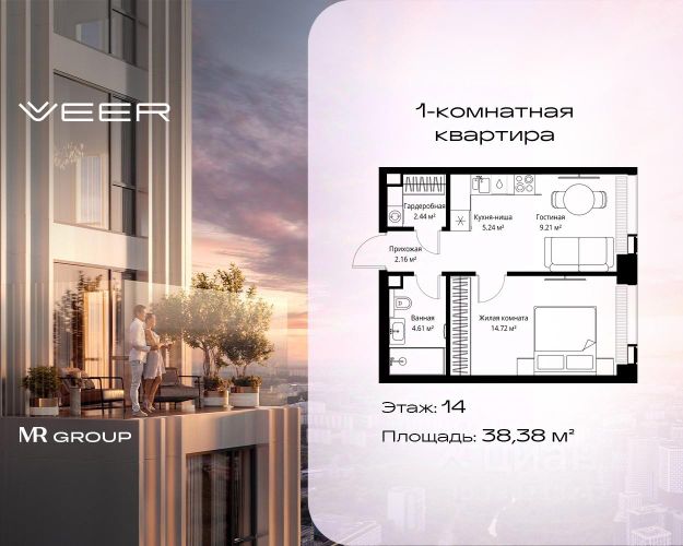 Прямая продажа от застройщика. Продаётся 1-комнатная квартира общей площадью 31.80 м² с предчистовой отделкой в ЖК VEER на 14-м этаже 59 этажного дома. Жилой комплекс бизнес-класса VEER от компании MR — это футуристичный мультиквартал, расположенный в престижной локации на западе Москвы. Благодаря переменной высоте башен — двух 22-этажных, 46-этажной и двух 59-этажных — возникает динамичность в силуэте комплекса, а его яркий образ вносит разноплановость в архитектурный пейзаж района. Расположение и транспортная доступность: • VEER удобно расположен в непосредственной близости от Кутузовского проспекта, обеспечивая быстрый доступ к центральным районам Москвы • Комплекс находится непосредственно напротив самого большого природного заказника в Москве - парка "Долина реки Сетунь", а за семь минут можно доехать до памятника садово-паркового искусства, Троекуровского леса. • Всего в 15 минутах - центр города, самая престижная бизнес-школа управления России "Сколково", дом творчества "Переделкино". • 18 минут пешком до м. "Давыдково" • Открытие новых станций метро в шаговой доступности в будущем Инфраструктура: Разнообразить свой день резиденты VEER смогут также проводя больше времени на свежем воздухе. Двор разделен на 4 зоны разных эмоций и действий, которые пересечены и соединены веерными прогулочными маршрутами: • Спортивная площадка устроена в глубине "Кленовой рощи" • В "Чайном домике" будет создан навес с утеплением для отдыха в любую погоду • Площадки для детей воплотятся в "Волшебный лес" с цветами, зеркалами и световым дизайном • "Центральная площадь" устроена у водного оазиса живописного пруда. Компания MR предлагает своим клиентам специальные условия приобретения квартир в рамках программ ипотечного кредитования от банков-партнеров.