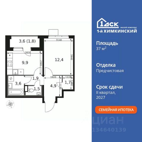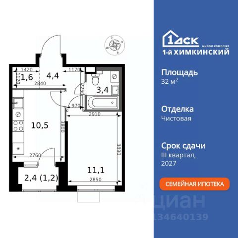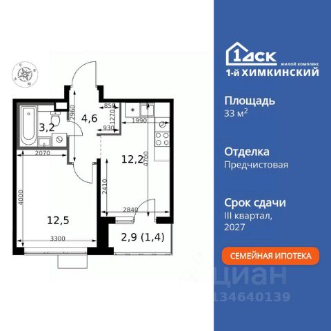 БЕЗ ПЕРВОНАЧАЛЬНОГО ВЗНОСА! • ИПОТЕКА 10% ДЛЯ ВСЕХ БЕЗ НАЦЕНОК • ДОСТУПНО ПО СЕМЕЙНОЙ ИПОТЕКЕ Прямая продажа от застройщика! Жилой Комплекс класса Комфорт. Продаётся 1-к квартира номер 639 общей площадью 33 кв.м. на 14-м этаже 17 этажного здания. Предчистовая отделка. Особенности квартиры: - Линейная планировка - максимальная функциональность и удобство. - Просторная кухня - место для семейных ужинов и кулинарных экспериментов. - Ниша под шкаф - компактное и удобное место для вещей. - Тёплая лоджия - пространство для отдыха в любое время года. Квартира с предчистовой отделкой (White box). Вам не придется заниматься черновыми и трудоёмкими работы, а чистовую отделку и дизайн - сделайте на свой вкус. Информация о комплексе: Квартал класса комфорт плюс, где современное городское пространство граничит с удивительной природой вокруг. 1-й Химкинский расположен на территории в 102 га и органично вписан в природное окружение Химкинского леса и канала им. Москвы. В проекте предусмотрена богатая коммерческая инфраструктура с собственным торговым центром, общеобразовательные учреждения и социальные объекты. Изюминкой жилого комплекса будут спортивно-оздоровительный комплекс с термами и SPA и семейный парк развлечений. Транспортная доступность: ЖК "1-й Химкинский" дает возможность выбрать любой способ передвижения как до города, так и до самых разных объектов, которые могут представлять интерес для его жителей. Не важно, какой способ передвижения вы предпочитаете, успевать всегда и везде можно вне зависимости от выбора транспорта. - 8 мин. пешком (800 м) до остановки "Золотая Арка" -10 мин пешком (1 км) до остановки "Поворот на Ивакино" Внутренняя инфраструктура: - Безопасность: закрытые дворы без машин, безбарьерная среда и сквозные подъезды, камеры на детских площадках с возможностью трансляции на смартфоне - Идеальный отдых в кругу семьи: семейный парк развлечений на территории, торговый центр (2-х этажный) общей площадью более 8 тыс. кв. м с фудкортом - Образование: 3 детских сада и современная муниципальная школа на 2450 мест - Спортивная среда: закольцованный веломаршрут с навигацией, спортивный комплекс с термами, закрытый тренажерный зал и зоны ворк-аута - Социальные объекты: поликлиника со станцией скорой помощи, пожарное депо - Подземный паркинг и кладовые помещения на -1 этаже, станция техобслуживания и автомойка на территории