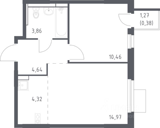 В продаже 1-комнатная квартира в корпусе 5 ЖК 'Мытищи Парк'. Квартира располагается на 14 этаже, общая площадь 38.25 м2.