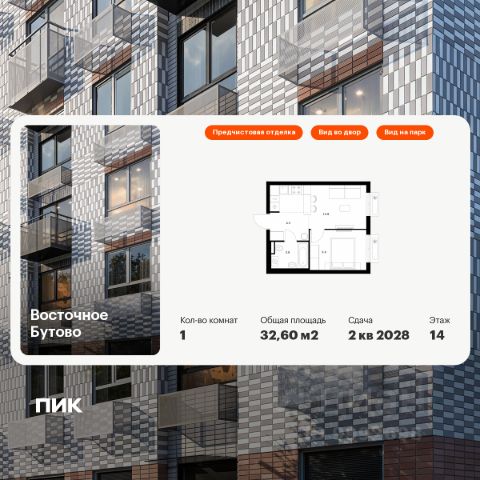 Продажа 1-комнатных квартир на 14 этаже рядом с метро Бульвар Дмитрия Донского