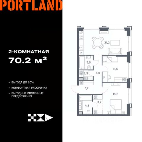 Цены указаны с условием 100% оплаты и стандартной ипотеки. Продаётся 2-к. квартира, 23 этаж в жилом комплексе бизнес-класса Portland от девелопера FORMA. ЖК расположен на берегу Москвы-реки в северной части района Печатники в акватории Южного речного порта. Основные преимущества проекта: • Самая протяженная береговая линия реки в Москве 13 км. • Вид на реку в сторону запада панорамные окна на самое широкое водное пространство Москва-реки (900 м) и на закат. • 95% квартир с видом на воду. • К Portland не примыкает крупных автомагистралей - отсутствие фонового шума дорог. • В перспективе ближайших 11 лет на территории района запланировано грандиозное преобразование и комплексное развитие. • Собственная набережная длиной 412 м., которая после завершения строительства сомкнется с эко-парком Печатники. • Прямой выход к воде и отсутствие проезжей части между Portland и береговой линией. • Инфраструктурное разнообразие: супермаркеты, крупные торговые центры, рестораны, кафе, фитнес-клубы, бьюти-салоны, компании сферы услуг и многое другое. • Собственная школа на 300 мест и детский сад на 275 мест. • Паркинг на 650 м/м • Транспортная вседоступность: метро, авто, велосипед, речной трамвай, канатная дорога • 15 мин. пешком до м. Печатники, 15 мин. на авто до ТТК, 20 минут на авто до Садового кольца