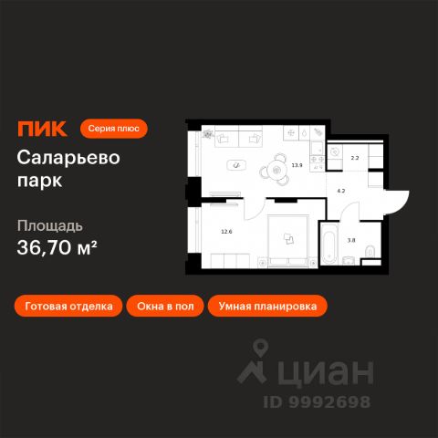 Продаётся 1-комн. квартира площадью 31,7 кв.м на 14 этаже 14 этажного дома (Корпус 82.6, Секция 6) проекта ПИК Саларьево парк. Светлый просторный подъезд на уровне земли, функциональная планировка, большие окна, c отделкой. Жилой район "Саларьево парк" расположен в Новой Москве, в четырёх километрах от МКАД по Киевскому шоссе. Две станции метро: "Саларьево" и "Филатов луг", — находятся в пешей доступности от проекта. Дойти до них можно за 510 минут. В квартале уже создана качественная среда, где есть абсолютно всё для полноценной жизни, работы и отдыха. Благодаря удобному расположению проекта всё важное будет рядом: детские сады, школы, кафе и рестораны, шопинг в торговых центрах, фитнес и даже аэропорт. Все корпуса в квартале гармонично сочетаются, образуя единую городскую среду. Между собой их объединяет невысокая этажность и натуральная цветовая гамма. Здесь приятно гулять и проводить время на улице всей семьёй. В "Саларьево парке" создана уникальная образовательная среда, включающая в себя шесть школ, рассчитанных на 6 250 учеников. Две из них уже открыты, их посещает 2 300 детей. Также на территории "Саларьево парка" находится 12 детских садов, один из которых с бассейном. Сейчас уже открыты 7 садов. В "Саларьево парке" открыта уникальная игровая площадка — PlayHub "Оригами". Здесь есть ручей, горка-труба и рельефные холмы. Взрослые смогут отдохнуть в уютном кафе, пока дети играют. Также на территории проекта есть SportHub — большая спортивная зона, разделённая по интересам и возрастам. Здесь можно заниматься разными видами спорта: футболом, баскетболом, волейболом и стритболом. Зимой центральную часть площадки превращают в каток. Во дворах-парках жилого квартала есть места для отдыха, детские и спортивные площадки. На первых этажах домов расположены магазины, кафе и полезные сервисы. Также вблизи проекта есть несколько масштабных торговых центров. До ТЦ "Саларис" пять минут пешком, до "Рио", Metro Cash & Carry и "Леруа Мерлен" — пять минут на автомобиле. Артикул 1032904 (Застройщик ООО "Специализированный Застройщик "Тирон")
