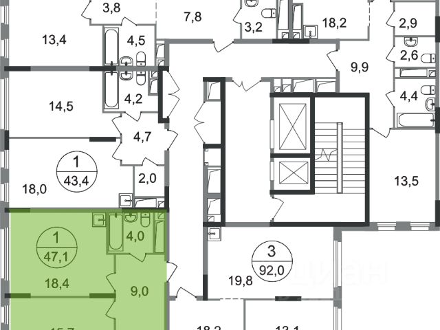 Продается однокомнатная квартира в городе-парке "Переделкино Ближнее". Общая площадь квартиры - 43 кв. м, этаж 14 из 17. Срок сдачи - 1 квартал 2028 года. Тип дома - монолитный. Корпус расположен в 13 фазе строительства и состоит из 8 секций с переменной этажностью 12-17 этажей. Все секции без отделки. Около 13 фазы запланировано строительство многоуровневого паркинга на 300 м/мест. 13 фаза имеет уникальное расположение и находится непосредственно на берегу Федосьинского пруда, который является сердцем города-парка "Переделкино Ближнее". Город-парк "Переделкино Ближнее" расположен в 8 км от МКАД по Боровскому шоссе. ТРАНСПОРТНАЯ ДОСТУПНОСТЬ: - 15 минут пешком до станции МЦД-4 "Мичуринец" - 25 минут пешком до станции метро "Рассказовка" Солнцевской линии - 30 минут до центра Москвы - 2026 г. - открытие трассы Солнцево-Бутово-Варшавское шоссе РАЗВИТАЯ СОЦИАЛЬНАЯ ИНФРАСТРУКТУРА: - 7 детских садов, 3 школы - банки, продуктовые магазины, аптеки, фитнес центры, салоны красоты и пр БЛАГОУСТРОЙСТВО: - дворы без машин - игровые зоны и развивающие детские площадки - зоны для созерцательного и медитативного отдыха - зоны для занятий спортом ОСОБЕННОСТИ АРХИТЕКТУРЫ: - высокие потолки от 3,03 м - безбарьерные входные группы - колясочные в каждой входной группе - кладовые помещения расположены на -1 этаже каждой секции - в каждой секции 2 лифта: 1 пассажирский, 1 грузовой - на фасаде предусмотрены корзины для установки кондиционеров АВТОРСКИЙ ДИЗАЙН: Входные группы выполнены по авторскому дизайну, благодаря панорамному остеклению наполнены естественным светом. В каждой входной группе будет располагаться комфортабельная зона ожидания с возможностью зарядить электронные устройства, почтовые ящики, колясочная, акцентные пуфы и столик.