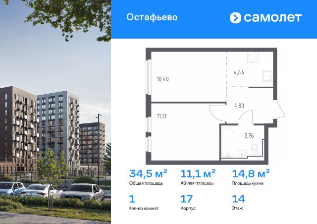 Строим кварталы для жизни с заботой о будущем. Предлагается 1-комнатная квартира комфорт-класса 35,81 кв.м в корпусе 22 на 14 этаже, в ЖК "Остафьево" Квартира без отделки. Доступность опции "отделка" и возможность комплектации мебелью и декором уточняйте у застройщика. Приобрести квартиру возможно по специальным акциям от застройщика, с текущими условиями акций можно ознакомиться в блоке "Акций". Цена динамическая и может отличаться, уточняйте актуальность у застройщика. "Остафьево" — масштабный жилой комплекс в Новой Москве, рядом с одноименным музеем-усадьбой и городским парком "Барыши". До станций МЦД "Щербинка" и "Остафьево" можно добраться на автомобиле за 57 минут. Часть домов уже сдана, на территории открыты две школы и три детских сада, а в будущем будет построена поликлиника, ТЦ, еще одна школа и три детских сада. Все необходимое рядом: на первых этажах домов работают магазины, аптеки и кафе. Дворы — приватные мини-парки без машин и посторонних. Кроме игровых площадок, для детей обустроили тематический плейхаб "Маяк". В будущем появятся плейхаб "Алиса в стране чудес", арт-объект "Тропа зеркал", а также большой ландшафтный парк. В квартале — монолитные дома комфортной высоты, от 10 этажей. Светлые фасады украшают кирпичные вставки в теплых природных оттенках.