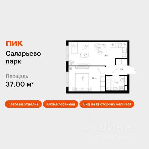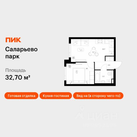Продаётся 1-комн. квартира площадью 38 кв.м на 14 этаже 23 этажного дома (Корпус 69.1, Секция 1) проекта ПИК Саларьево парк. Светлый просторный подъезд на уровне земли, функциональная планировка, большие окна, предчистовая отделка. Жилой район "Саларьево парк" расположен в Новой Москве, в четырёх километрах от МКАД по Киевскому шоссе. Две станции метро: "Саларьево" и "Филатов луг", — находятся в пешей доступности от проекта. Дойти до них можно за 510 минут. В квартале уже создана качественная среда, где есть абсолютно всё для полноценной жизни, работы и отдыха. Благодаря удобному расположению проекта всё важное будет рядом: детские сады, школы, кафе и рестораны, шопинг в торговых центрах, фитнес и даже аэропорт. Все корпуса в квартале гармонично сочетаются, образуя единую городскую среду. Между собой их объединяет невысокая этажность и натуральная цветовая гамма. Здесь приятно гулять и проводить время на улице всей семьёй. В "Саларьево парке" создана уникальная образовательная среда, включающая в себя шесть школ, рассчитанных на 6 250 учеников. Две из них уже открыты, их посещает 2 300 детей. Также на территории "Саларьево парка" находится 12 детских садов, один из которых с бассейном. Сейчас уже открыты 7 садов. В "Саларьево парке" открыта уникальная игровая площадка — PlayHub "Оригами". Здесь есть ручей, горка-труба и рельефные холмы. Взрослые смогут отдохнуть в уютном кафе, пока дети играют. Также на территории проекта есть SportHub — большая спортивная зона, разделённая по интересам и возрастам. Здесь можно заниматься разными видами спорта: футболом, баскетболом, волейболом и стритболом. Зимой центральную часть площадки превращают в каток. Во дворах-парках жилого квартала есть места для отдыха, детские и спортивные площадки. На первых этажах домов расположены магазины, кафе и полезные сервисы. Также вблизи проекта есть несколько масштабных торговых центров. До ТЦ "Саларис" пять минут пешком, до "Рио", Metro Cash & Carry и "Леруа Мерлен" — пять минут на автомобиле. Артикул 1023334 (Застройщик ООО "Специализированный Застройщик "Тирон")