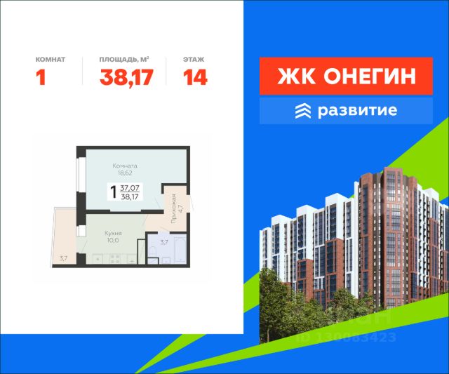 Продается квартира площадью 38.15 кв. м с отделкой white box на 14 этаже 22 этажного дома. Квартира находится в новом жилом комплексе "Онегин", расположенном по адресу: Московская область, г. Подольск, ул. Садовая 3, корп. 1. "Онегин" - начало новой жизни. Проект от девелопера "Развитие" расположился в центральной части Подольска - города-спутника столицы. Жилой комплекс состоит из 10 секций переменной высоты (20 - 22 этажа) и включает в себя 510 квартир, собственную инфраструктуру, закрытый благоустроенный двор-парк, подземный паркинг на 262 машино-места. Прекрасный баланс города и природы - ЖК "Онегин". Расположение Пешком: - 5 мин. до остановки "Красная горка"; - 10 мин. до склона у реки Пахры; - 30 мин. до МЦД "Силикатная" (или 15 мин. на автобусе). На автомобиле: - 3 мин. до проспекта Ленина с выездом на Симферопольское шоссе; - 10 мин. до центра Подольска; - 30 мин. до ст. метро "Бульвар Дмитрия Донского"; - 35 мин. до МКАД; - 1 час до центра Москвы. Благоустройство - большой приватный двор только для пешеходов; - собственный сквер с всесезонной растительностью; - яркий игровой комплекс для детей всех возрастов; - спортивный корт с тренажерами; - площадка для баскетбола и футбола; - стильная входная группа с витражным остеклением; - 2 пассажирских лифта и 1 грузовой в каждом подъезде; - беседки и скамьи для отдыха; - экологически-чистое игровое и спортивное оборудование; - освещение в темное время суток; - гостевая автостоянка на отдельной территории; - все сервисы бытовых услуг в шаговой доступности. Окружение - досуговые пространства в любое время года: парк культуры и отдыха имени В. Талалихина, музей-заповедник "Подолье", горнолыжный комплекс "Красная Горка", исторические усадьбы "Остафьево" и "Дубровицы"; - школа и детский сад в 5 минутах ходьбы; - торгово-развлекательные центры "Капитолий", "Галерея", "Кварц"; - 3 фитнес-центра, стадионы "Зенит" и "Подолье", 4 взрослых и детских бассейна.