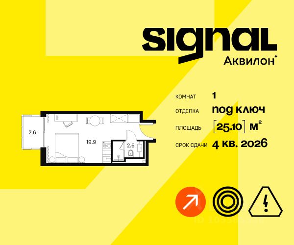Продажа от застройщика. Продаются уютные однокомнатные апартаменты на 14 этаже 23-этажного современного апарт-комплекса Signal. Срок сдачи: 4 кв. 2026 г. Отделка: Апартаменты передаются в предчистовой отделке white box. Возможен заказ чистовой отделки. Мы выполним все инженерные и черновые отделочные работы, оставив вам самое приятное - создание индивидуального интерьера и неповторимого уюта. А если отпраздновать новоселье хочется как можно скорее, вы сможете заказать чистовую отделку в одном из двух цветовых вариантов: Beigestone или Greystone. Вам останется только завезти мебель и начать наслаждаться жизнью в SIGNAL. Расположение: ЖК Signal расположен на перекрестке столичных маршрутов. По Сигнальному проезду легко выехать на Алтуфьевское шоссе, СВХ и проспект Мира. Транспортная доступность: - 3 минуты пешком до станции Владыкино - 15 минут на автомобиле до ТТК - Ботанический сад в 10 минутах ходьбы Внутренняя инфраструктура Signal: - Фитнес-центр на первом этаже - Игровая площадка и приватном дворе - Коворкинг и уединенные зоны для работы - Торговая галерея Преимущества: - SoundStop - Система защиты от шума, дополнительная шумоизоляция - Система умного дома InHome 3.0 - управление домом нажатием нескольких кнопок - Система Termo-S, позволяющая сэкономить на оплате теплоснабжения - Фитнес-зал позовлит поддерживать себя в форме - Лаунж-зоны, где можно расслабиться - Лобби-бар с большим выбором напитков и закусок - Гостиничный сервис и консьерж reception 24/7 для решения бытовых задач - Апартаменты обслуживает профессиональная управляющая компания - Арт-объекты во дворах для стильного контента Signal - это дом, - чья молодость духа и бодрый настрой заряжают всех, независимо от возраста - который задает абициозную планку с самого начала карьеры - где живут интересные события и встречаются хорошие люди
