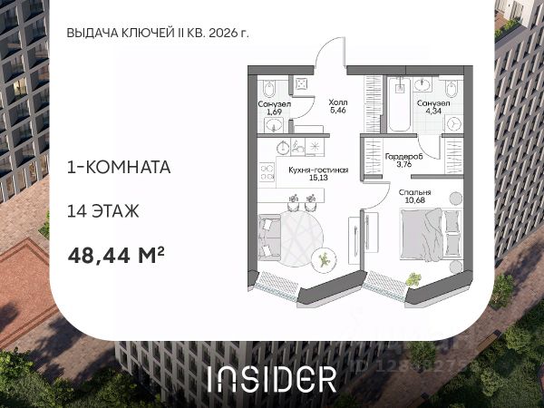 Продажа 1-комнатных квартир на 14 этаже станция ЗИЛ (МЦК)