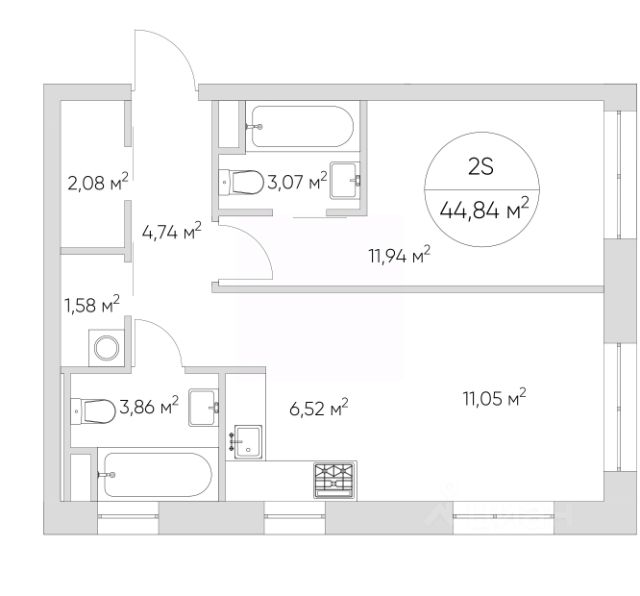 Продаётся 1-комнатная квартира 510, площадью 43,43 м², на 14 этаже в ЖК "MYPRIORITY Дубровка" корпус 2. Стоимость — от 21786013 руб. Квартира без отделки, планировка угловая, окна на улицу.