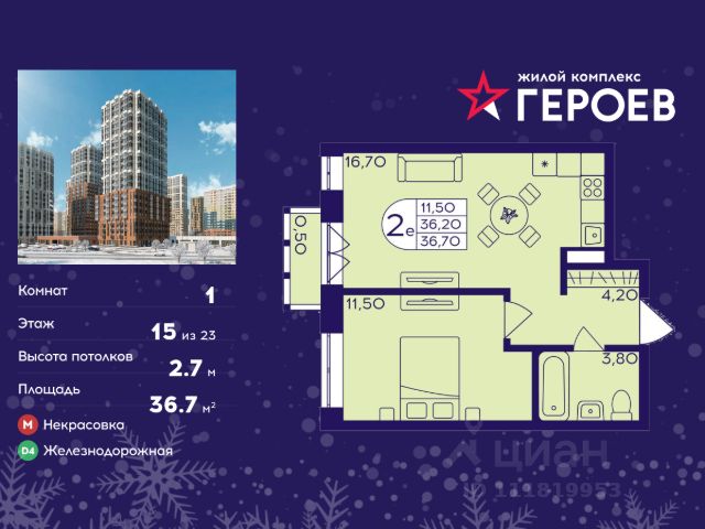 Продаётся 1-комнатная квартира 36.70 кв. м. в жилом комплексе "Героев" в Балашихе, Железнодорожный. Квартира расположена на 15 этаже 610 корпуса. В наличии квартиры с отделкой. Всего 40 минут до центра Москвы. При покупке квартиры в сданном доме ключи выдаются сразу! Жилой квартал "Героев" - это уютный проект для семей с детьми. В квартале созданы все условия для досуга всех возрастов: игровые и спортивные площадки, места для отдыха и прогулочные зоны. За 15 минут можно дойти от дома до Ольгинского лесопарка, популярного места для отдыха на свежем воздухе. На территории жилого комплекса уже открыт детский сад на 250 мест и началось строительство еще одного - для 220 малышей, а также школы для 1320 учеников. Рядом работают магазины, кафе, супермаркеты, пункты выдачи. Преимущества: • В уютных светлых квартирах с просторными кухнями-гостиными удобно встречать гостей и проводить время наедине друг с другом. • Благодаря увеличенному остеклению в комнатах много света. • Квартиры продаются с отделкой, можно заселяться сразу после получения ключей.