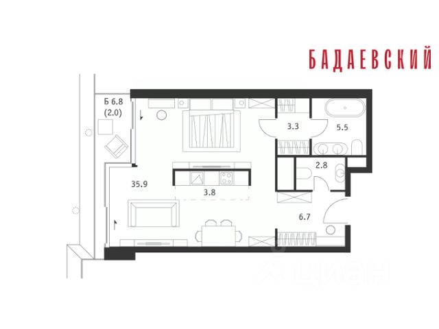 Продаётся 1-комнатная квартира общей площадью 58.70 м² на 15 этаже Жилого Комплекса Бадаевский. О нем говорили. Его ждали. Жилой комплекс "Бадаевский" на Кутузовском проспекте — это место для жизни, которое займет место в истории. Комплекс стал первым в истории московским проектом, победившим в категории Residential на World Architecture Festival. Девелопер Capital Group. В "Бадаевском" исторические здания завода и футуристические "парящие" дома создают единый комплекс, который станет новой достопримечательностью и символом Москвы. Панорамное остекление, террасы и веранды дарят неординарные и захватывающие виды. Благодаря расположению домов и панорамному остеклению, жилые пространства в "Бадаевском" будут наполнены светом. А виды из окон домов-"лент" на Москву-реку, пивоваренный завод, небоскребы "Москва-Сити" и Белый дом дополнены принципиально новым ощущением высоты. На территории Бадаевского завода появится масштабный ландшафтный парк с концепцией "русский лес". Впервые в истории района Дорогомилово у жителей появится прямая связь набережной Тараса Шевченко с Кутузовским проспектом. Близость Москвы-реки добавляет к преимуществам "Бадаевского" природную энергетику и приятные прогулки на свежем воздухе. Подземная парковка позволит сделать территорию завода полностью пешеходной, а сам комплекс представит новый подход к организации открытого и уединенного пространства в центре Москвы. Расположение в начале Кутузовского проспекта делает проект не только престижным, но и удобным: до Третьего транспортного и Садового кольца можно доехать за 5 минут, а Кремль и основные исторические достопримечательности расположены в 15 минутах на автомобиле. Напротив "Бадаевского" находится офисный кластер "Москва-Сити". Для жителей комплекс будет создано не только новое масштабное благоустройство, но и вся необходимая инфраструктура. В исторических корпусах появятся магазины, бутики, кафе и рестораны, коворкинг и крафтовая пивоварня, а в зданиях элеваторов — русская баня. Кроме того, запланирован фермерский рынок и досуговый кластер с музыкальной студией, центром детского творчества и фитнес-центром с бассейном.