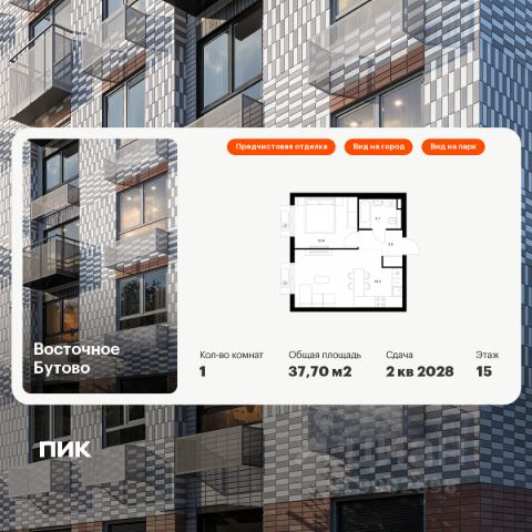 Продажа 1-комнатных квартир на 15 этаже рядом с метро Бульвар Дмитрия Донского
