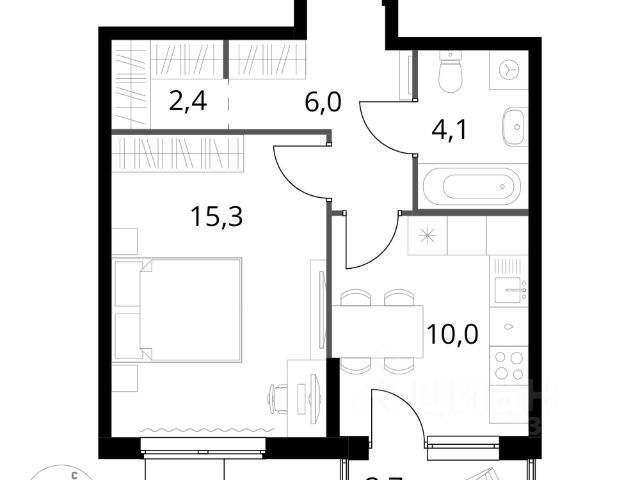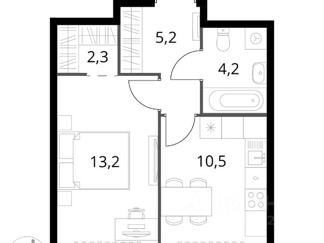 Общая площадь - 43.10