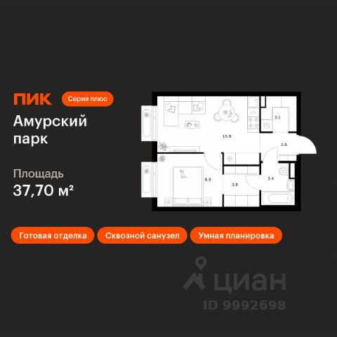 Продается 1-комнатная квартира в ЖК "НАЗАРЕ'" Общая площадь - 41.50 Тип дома - монолитный Этаж - 15 Год сдачи - 2028 Предлагается квартира площадью 41.50 кв. м в новом современном квартале на востоке Москвы, прямо у станций метро и МЦК "Бульвар Рокоссовского". Квартира располагается в корпусе 3 на 15 этаже комплекса бизнес-класса "НАЗАРЕ'". Великолепная транспортная доступность: • 2 минуты ходьбы до метро и МЦК "Бульвар Рокоссовского"; • 3 минуты на авто - удобный выезд на СВХ (МСД); • 10 минут на авто до национального парка "Лосиный остров"; • 10 минут на авто до "Измайловского парка"; • 15 минут до авто до парка "Сокольники"; • 15 минут занимает выезд на ТТК, • 18 минут на авто до Садового кольца. Индивидуальная архитектура в современном стиле: • шесть башен переменной высотности от 24 до 43 этажей, в том числе одна высотная 143-метровая доминанта, которая станет достопримечательностью востока Москвы; • авторы архитектурной концепции - знаменитое бюро СПИЧ (среди их работ - башня "Федерация", новое здание Третьяковской галереи, реконструкция БСА "Лужники" и др.); • торгово-развлекательный комплекс с фитнес-центром, детской игровой комнатой и открытыми террасами прямо возле квартала; • дизайнерские лобби от бюро ABOVE ARCHITECTURE с панорамными окнами, интерьерами в теплой цветовой гамме и мягкой зоной ожидания располагаются в каждой башне; • корпуса расположены так, чтобы из окон открывались потрясающие виды на закаты и рассветы, зеленые панорамы или огни мегаполиса; Особенности расположения "НАЗАРЕ'" находится максимально близко к метро, и в то же время проект вписан в уже существующую инфраструктуру зеленого столичного района Богородское. Это обеспечивает быстрый доступ ко всем нужным объектам инфраструктуры (детские сады, школы, медцентры, магазины, салоны красоты, фитнес-клубы, футбольные поля, спортивные школы), а также к живописным зеленым зонам - национальному парку "Лосиный остров", парку "Сокольники", Черкизовскому детскому парку, Измайловскому лесопарку с усадьбой Измайлово. Собственная инфраструктура и благоустройство Шесть башен квартала будут объединены цокольным этажом, в который можно попасть как с улицы, так и со стороны лобби. Здесь разместятся необходимые для комфортной повседневной жизни кофейни, супермаркет, рестораны, магазины и многое другое. В комплексе предусмотрен вместительный двухуровневый подземный паркинг с келлерами для хранения сезонных вещей. Во дворе комплекса "НАЗАРЕ'" будут места как для спокойного отдыха и работы, так и для игр и спорта. Здесь организованы игровые площадки для детей всех возврастов, места для стритбола и тенниса, а также зона с природным ландшафтом и коворкинг с экологичной деревянной мебелью.