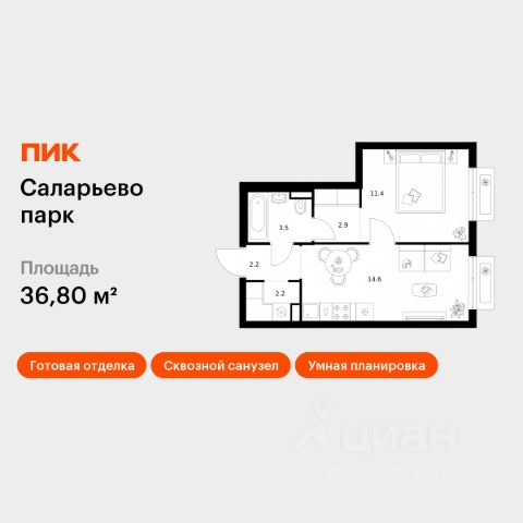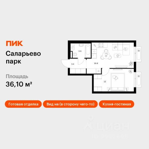 Продается однокомнатная квартира без отделки в 7 фазе города-парка "Первый Московский". Общая площадь квартиры - 44,5 кв. м, этаж 15 из 20. Срок сдачи - 1 квартал 2027 года. Тип дома - монолитный. ТОЛЬКО ДО 28 ФЕВРАЛЯ: • Рассрочка до 13 месяцев с первоначальным взносом от 10% • Ежемесячный платеж от 50 000 руб. *подробную информацию по скидкам и акциям уточняйте в отделе продаж. Корпус состоит из 3 секций. Город-парк "Первый Московский" расположен всего в 7 км по Киевскому шоссе от МКАД на территории Новой Москвы. Из города-парка прямой выезд на Киевское шоссе и трассу Солнцево-Бутово-Варшавское шоссе. ТРАНСПОРТНАЯ ДОСТУПНОСТЬ: - 5 мин. на личном автомобиле или 10 мин. на автобусе 189 и 147 до станции метро "Филатов Луг" - 25 мин. пешком до станции метро "Филатов Луг" ИНФРАСТРУКТУРА: Около 7 фазы запланировано строительство детского сада, школы, 2 многоуровневых паркингов. Также на территории проекта есть все необходимые объекты действующей социальной и бытовой инфраструктуры: 8 детских садов, 5 школ, ТЦ, магазины, паркинги, аптеки и др. БЛАГОУСТРОЙСТВО: - Дворы без машин - Игровые зоны для детей, зоны для занятия спортом, зоны для отдыха с навесами/качелями - Детские площадки разделены по возрастным группам - Пешеходный и веломаршрут с двухполосной велодорожкой 2,5 м в ширину - Озеленение с растениями всесезонного цветения ОСОБЕННОСТИ АРХИТЕКТУРЫ: В каждой секции 3 корпуса предусмотрены: - колясочные во входных группах - кладовые помещения с -1 по 20 этажи - коммерческие помещения на 1 этажах - по 4 лифта: 2 пассажирских, 2 грузовых - видеонаблюдение, установленное в холлах первых этажей, у подъездов и на прилегающей территории АВТОРСКИЙ ДИЗАЙН: Входные группы выполнены по авторскому дизайну, оснащены системой "тёплый пол". В каждой входной группе будет располагаться комфортабельная зона ожидания с мягким диваном, акцентными пуфами и столиком.