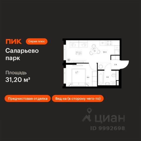 Продаётся 1-комн. квартира площадью 42,2 кв.м на 15 этаже 24 этажного дома (Корпус 82.4, Секция 4) проекта ПИК Саларьево парк. Светлый просторный подъезд на уровне земли, функциональная планировка, большие окна, предчистовая отделка. Жилой район "Саларьево парк" расположен в Новой Москве, в четырёх километрах от МКАД по Киевскому шоссе. Две станции метро: "Саларьево" и "Филатов луг", — находятся в пешей доступности от проекта. Дойти до них можно за 510 минут. В квартале уже создана качественная среда, где есть абсолютно всё для полноценной жизни, работы и отдыха. Благодаря удобному расположению проекта всё важное будет рядом: детские сады, школы, кафе и рестораны, шопинг в торговых центрах, фитнес и даже аэропорт. Все корпуса в квартале гармонично сочетаются, образуя единую городскую среду. Между собой их объединяет невысокая этажность и натуральная цветовая гамма. Здесь приятно гулять и проводить время на улице всей семьёй. В "Саларьево парке" создана уникальная образовательная среда, включающая в себя шесть школ, рассчитанных на 6 250 учеников. Две из них уже открыты, их посещает 2 300 детей. Также на территории "Саларьево парка" находится 12 детских садов, один из которых с бассейном. Сейчас уже открыты 7 садов. В "Саларьево парке" открыта уникальная игровая площадка — PlayHub "Оригами". Здесь есть ручей, горка-труба и рельефные холмы. Взрослые смогут отдохнуть в уютном кафе, пока дети играют. Также на территории проекта есть SportHub — большая спортивная зона, разделённая по интересам и возрастам. Здесь можно заниматься разными видами спорта: футболом, баскетболом, волейболом и стритболом. Зимой центральную часть площадки превращают в каток. Во дворах-парках жилого квартала есть места для отдыха, детские и спортивные площадки. На первых этажах домов расположены магазины, кафе и полезные сервисы. Также вблизи проекта есть несколько масштабных торговых центров. До ТЦ "Саларис" пять минут пешком, до "Рио", Metro Cash & Carry и "Леруа Мерлен" — пять минут на автомобиле. Артикул 1032699 (Застройщик ООО "Специализированный Застройщик "Тирон")