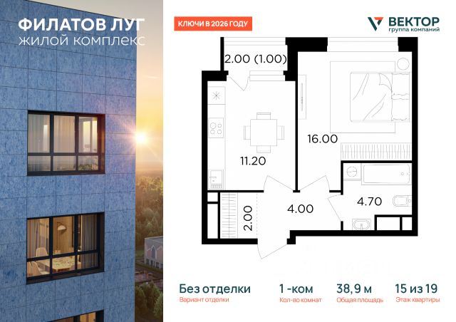 Продается однокомнатная квартира без отделки в 9 фазе города-парка "Первый Московский". Общая площадь квартиры - 48,1 кв. м, этаж 15 из 19. Срок сдачи - 4 квартал 2026 года. Тип дома - монолитный. Цена указана при 100% оплате. Новый корпус состоит из 2х секций, без отделки. Город-парк "Первый Московский" расположен всего в 7 км по Киевскому шоссе (Новая Москва). Из города-парка прямой выезд на Киевское шоссе и трассу Солнцево-Бутово-Варшавское шоссе. ТРАНСПОРТНАЯ ДОСТУПНОСТЬ: - 5 мин. на личном автомобиле или 10 мин. на автобусе 189, 147, 193 до станции метро "Филатов Луг" - 5 мин. на личном автомобиле или 12 мин. на автобусе 863 до станции метро "Саларьево" - 6 мин. на личном автомобиле или 15 мин. на автобусе 333 до станции метро "Рассказовка" РАЗВИТАЯ ИНФРАСТРУКТУРА В ОКРУЖЕНИИ: - общеобразовательная школа 2120 корпуса д1, д7, ш1-ш5 - детский сад 2120 корпуса д2, д9 - школа искусств - городская больница, детская поликлиника, филиал 5 - подстанция скорой помощи 58 и пожарно-спасательный центр 313 - отдел полиции, отдел ГИБДД - торговые центры Столица и Новомосковский - стадион, каток, бассейн - кафе, продуктовые магазины, аптеки, фитнес центры, салоны красоты и пр. БЛАГОУСТРОЙСТВО: - детская площадка для малышей и детей до 12 лет - места отдыха для родителей в непосредственной близости - озеленение территории с учетом зонирования - максимальная близость корпуса к пару Филатов луг ОСОБЕННОСТИ АРХИТЕКТУРЫ: - безбарьерные входные группы - колясочные в каждой входной группе - коммерческие помещения на 1 этаже в двух секциях - кладовые помещения расположены на жилых этажах и на -1 этаже - в каждой секции корпуса по 3 лифта: 2 пассажирских, 1 грузовой - на фасадах предусмотрены корзины для установки внешних блоков кондиционеров - видеонаблюдение установленное в холлах первых этажей, у подъездов и прилегающей территории АВТОРСКИЙ ДИЗАЙН: Входные группы выполнены по авторскому дизайну, оснащены системой "тёплый пол". В каждой входной группе будет располагаться комфортабельная зона ожидания, почтовые ящики с ячейкой для спама, колясочная, акцентные пуфы и столик.