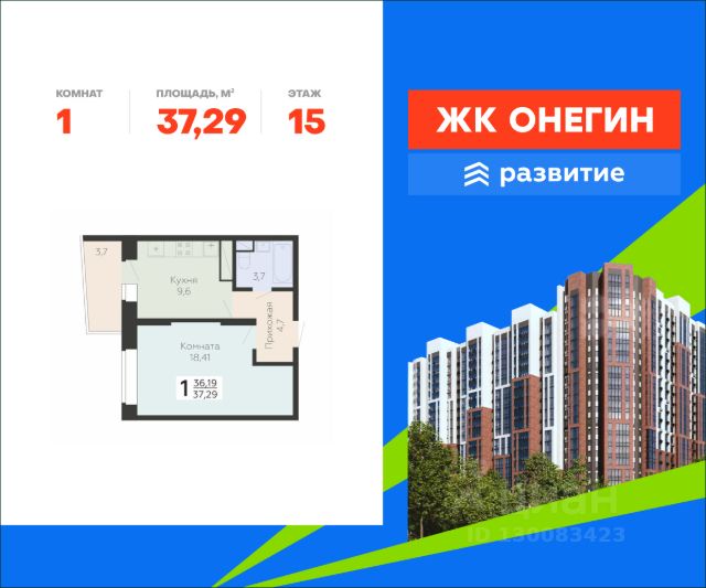 Продается квартира площадью 38.10 кв. м с отделкой white box на 15 этаже 22 этажного дома. Квартира находится в новом жилом комплексе "Онегин", расположенном по адресу: Московская область, г. Подольск, ул. Садовая 3, корп. 1. "Онегин" - начало новой жизни. Проект от девелопера "Развитие" расположился в центральной части Подольска - города-спутника столицы. Жилой комплекс состоит из 10 секций переменной высоты (20 - 22 этажа) и включает в себя 510 квартир, собственную инфраструктуру, закрытый благоустроенный двор-парк, подземный паркинг на 262 машино-места. Прекрасный баланс города и природы - ЖК "Онегин". Расположение Пешком: - 5 мин. до остановки "Красная горка"; - 10 мин. до склона у реки Пахры; - 30 мин. до МЦД "Силикатная" (или 15 мин. на автобусе). На автомобиле: - 3 мин. до проспекта Ленина с выездом на Симферопольское шоссе; - 10 мин. до центра Подольска; - 30 мин. до ст. метро "Бульвар Дмитрия Донского"; - 35 мин. до МКАД; - 1 час до центра Москвы. Благоустройство - большой приватный двор только для пешеходов; - собственный сквер с всесезонной растительностью; - яркий игровой комплекс для детей всех возрастов; - спортивный корт с тренажерами; - площадка для баскетбола и футбола; - стильная входная группа с витражным остеклением; - 2 пассажирских лифта и 1 грузовой в каждом подъезде; - беседки и скамьи для отдыха; - экологически-чистое игровое и спортивное оборудование; - освещение в темное время суток; - гостевая автостоянка на отдельной территории; - все сервисы бытовых услуг в шаговой доступности. Окружение - досуговые пространства в любое время года: парк культуры и отдыха имени В. Талалихина, музей-заповедник "Подолье", горнолыжный комплекс "Красная Горка", исторические усадьбы "Остафьево" и "Дубровицы"; - школа и детский сад в 5 минутах ходьбы; - торгово-развлекательные центры "Капитолий", "Галерея", "Кварц"; - 3 фитнес-центра, стадионы "Зенит" и "Подолье", 4 взрослых и детских бассейна.