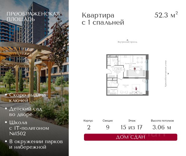 Продажа 1-комнатных квартир на 15 этаже рядом с метро Сокольники