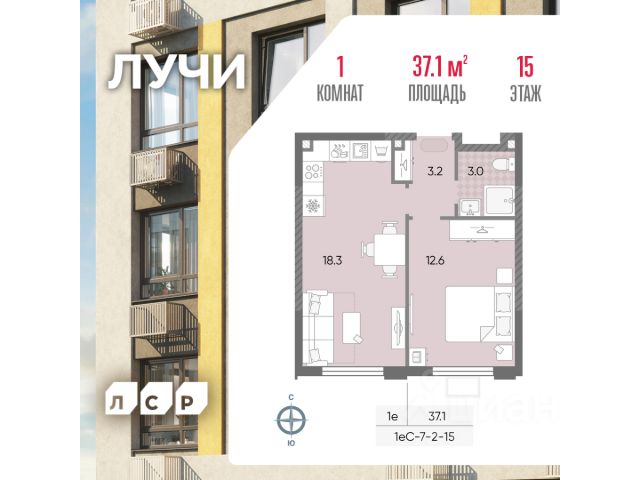 Продажа 1-комнатных квартир на 15 этаже рядом с метро Солнцево